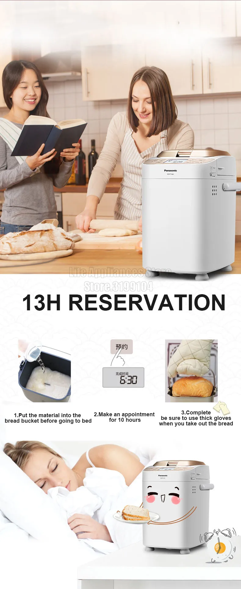 SD-PT1001 Bread Maker 35-In-1 Automatic 500g Dough Kneading 360W Heating Bread Baking Machine 13H Timing LED Display Panasonic