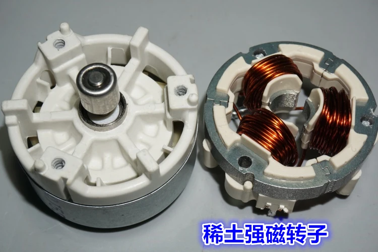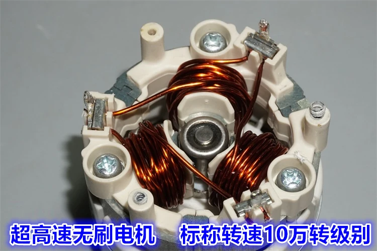 Этот двигатель был первоначально использован на высококачественных перезаряжаемых пылесосах, и качество изготовления очень хорошее. Двигатель имеет встроенный бесщеточный привод, трехфазный сверхвысокоскоростной бесщеточный двигатель, а скорость двигателя достигает 100000 об/мин. Скорость немного страшная, и она почти догоняет модель авиационного двигателя. Такая высокая скорость требует чрезвычайно высокого моторного баланса, и подшипники импортируются. NMB этот импортный подшипник.