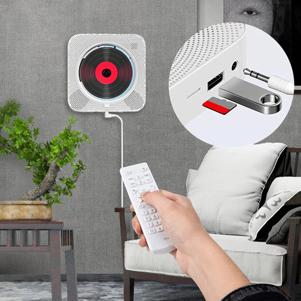 5. С комплектом настенного крепления и кронштейном:Он может быть легко установлен на стене или стоять на столе, это идеальное украшение для стен и столов. Беспроводной инфракрасный пульт дистанционного управления очень удобен в использовании для домашних развлечений или офисных встреч, и операция проста. Светодиодный дисплей. Легко узнать текущий режим воспроизведения. Оснащен пылезащитным покрытием CD, простым белым внешним видом, чтобы предотвратить попадание пыли на звук. Технология многоканального источника питания USB. Принимается умный блок питания управления IC. Методы питания: мобильный телефон зарядная головка и мобильный источник питания. Фактические условия электропитания: 5 В/2 а постоянного тока.