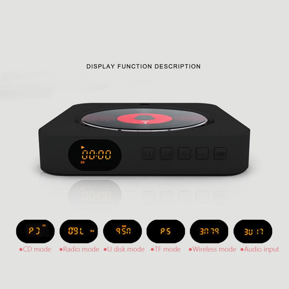 Характеристика:1. Многофункциональный портативный Bluetooth-совместимый cd-плеер:Поддерживает воспроизведение CD, BT, воспроизведение, fm-радио, Bluetooth, AUX-IN, воспроизведение флеш-карты памяти TF, U диск воспроизведения, 6-в-1 необходимые вещи.