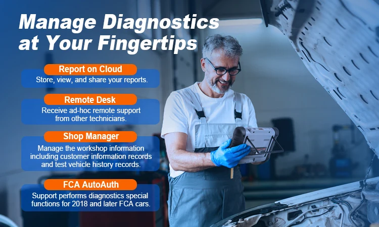 Надежно и эффективно поддерживает электронную тормозную систему путем деактивации и активации системы управления тормозом, помощи в управлении тормозной жидкостью, открывании и закрывании тормозных колодок и установке тормозов после замены диска или колодки и т. д.