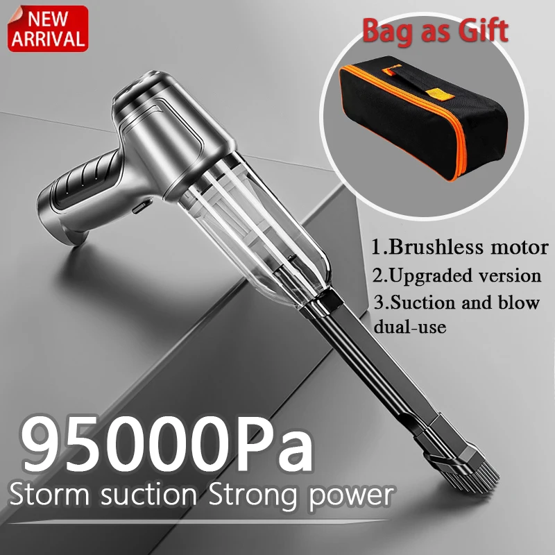 Портативный автомобильный пылесос, бесщеточный мотор, ручной пылесос для автомобиля, дома, двойного назначения, всасывание и удар, 95000 па, циклонное всасывание