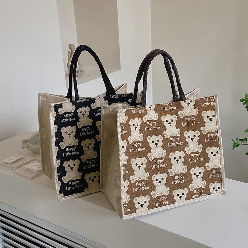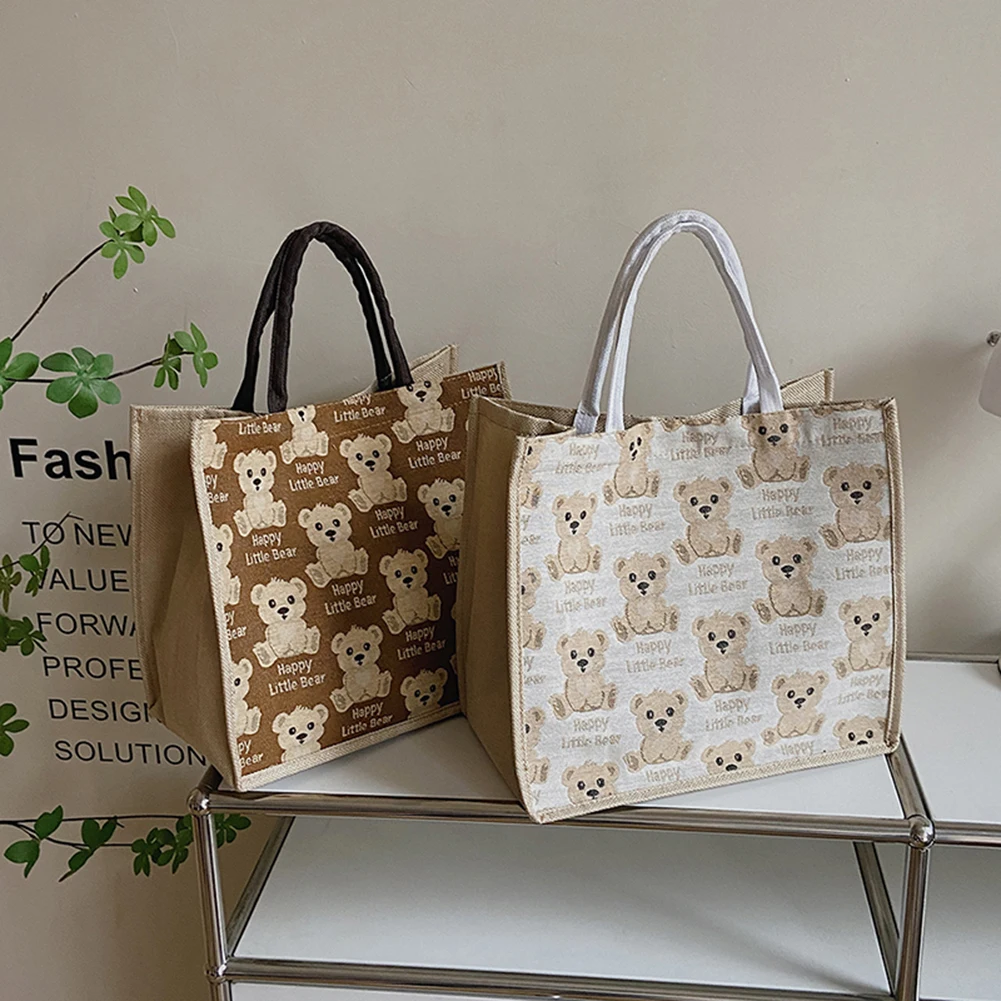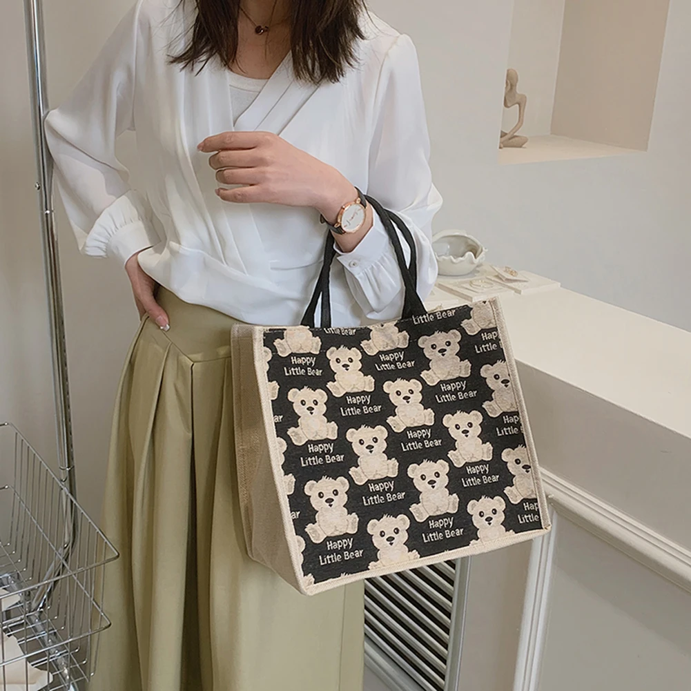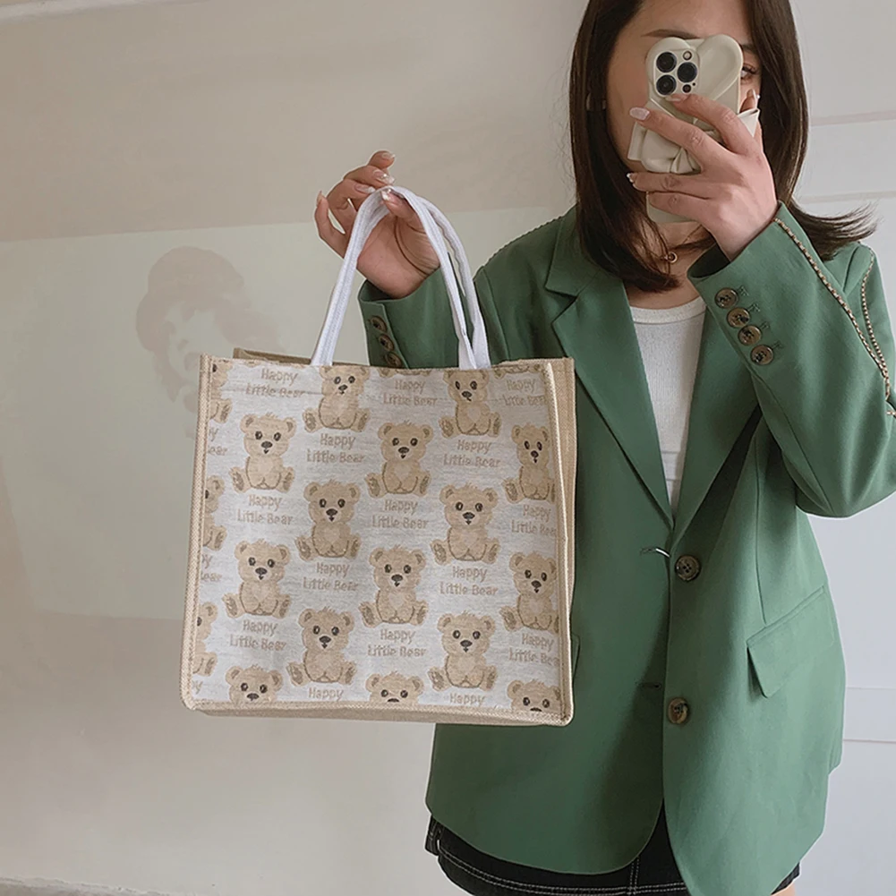 Женская сумка из хлопка и льна с милым мультяшным медведем, большая вместительность, Женский кошелек для путешествий, Подарочный мешочек с ручками