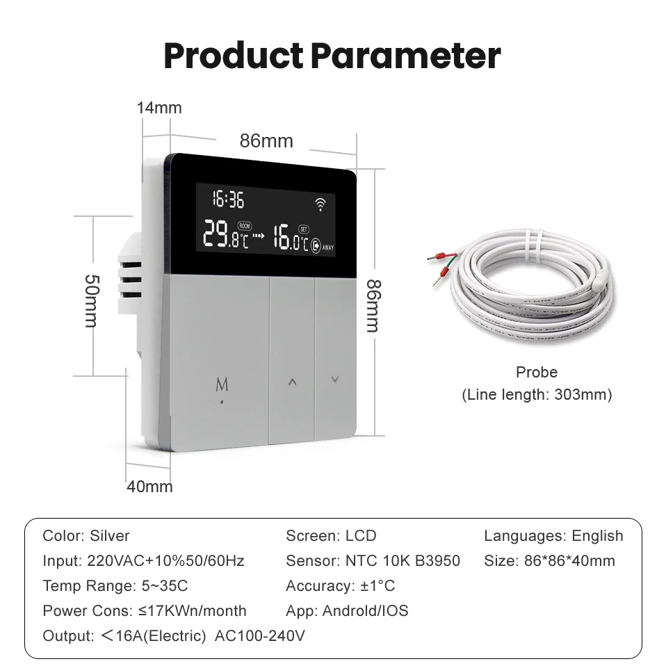 1 * датчик зонда (только электрический подогрев пола, включая кабель датчика)