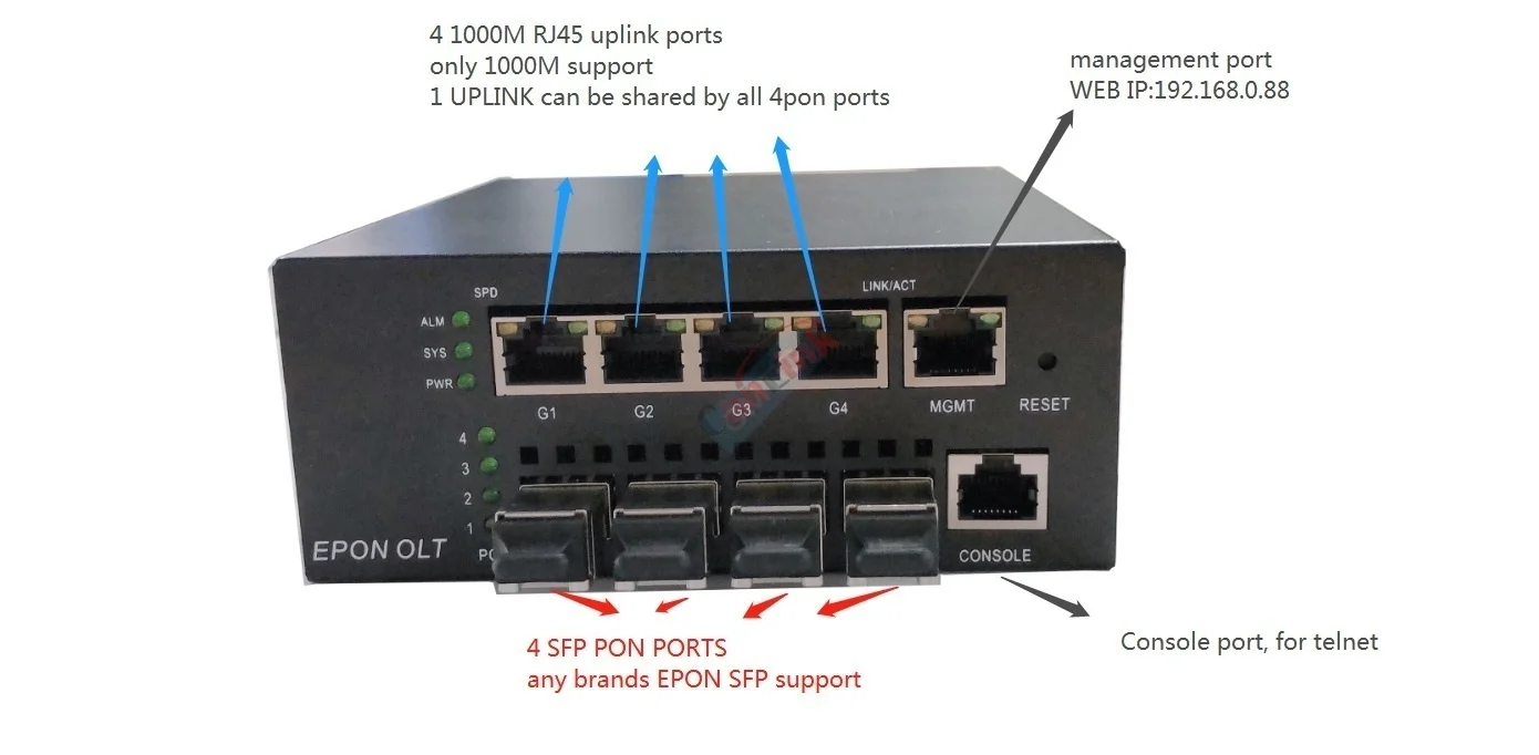 L Поставка 4 портов SFP PON, 4 порта восходящей линии связи 1000M RJ45