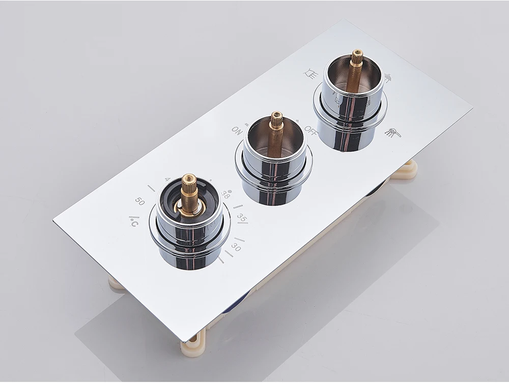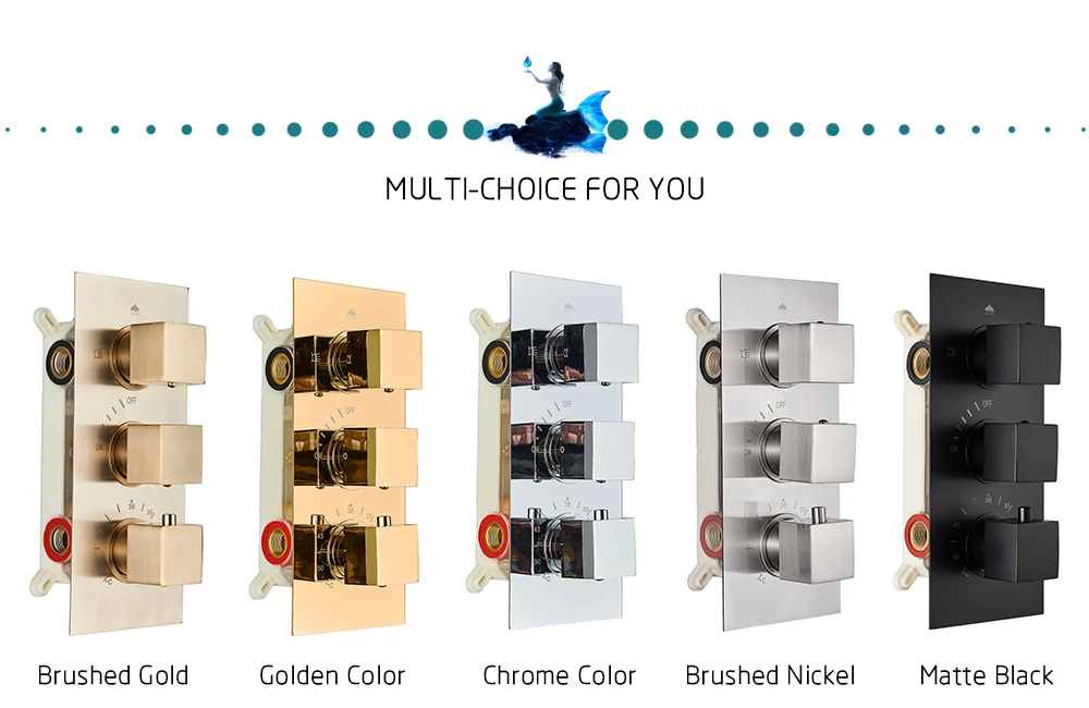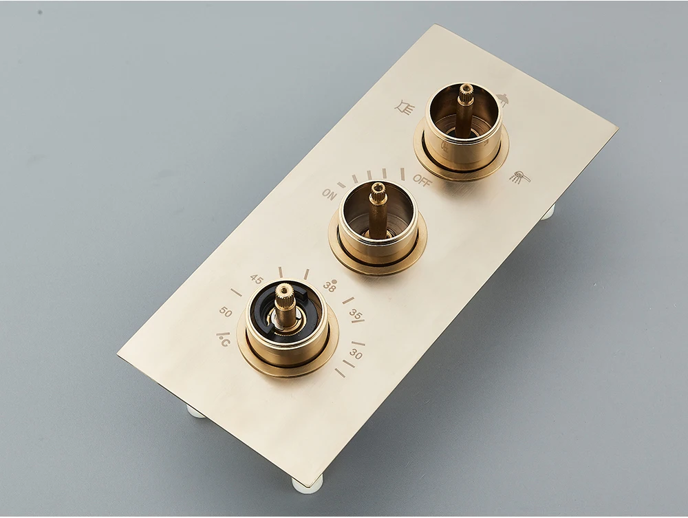 Термостатический клапан смесителя для душа из матового золота Латунный 3-ходовой смесительный клапан Термостатный регулирующий клапан Настенный скрытый душевой клапан
