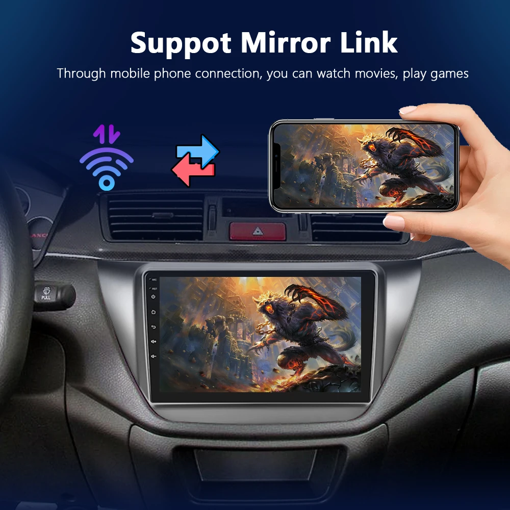 Android стерео поддерживает видео выход в двух мониторах. Задние пассажиры могут наслаждаться просмотром видео
