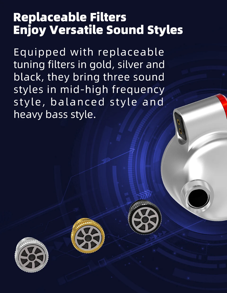 12. Стиль звука фильтров:Серебряный сбалансированный, золотой средней высокой частоты, черный тяжелый бас