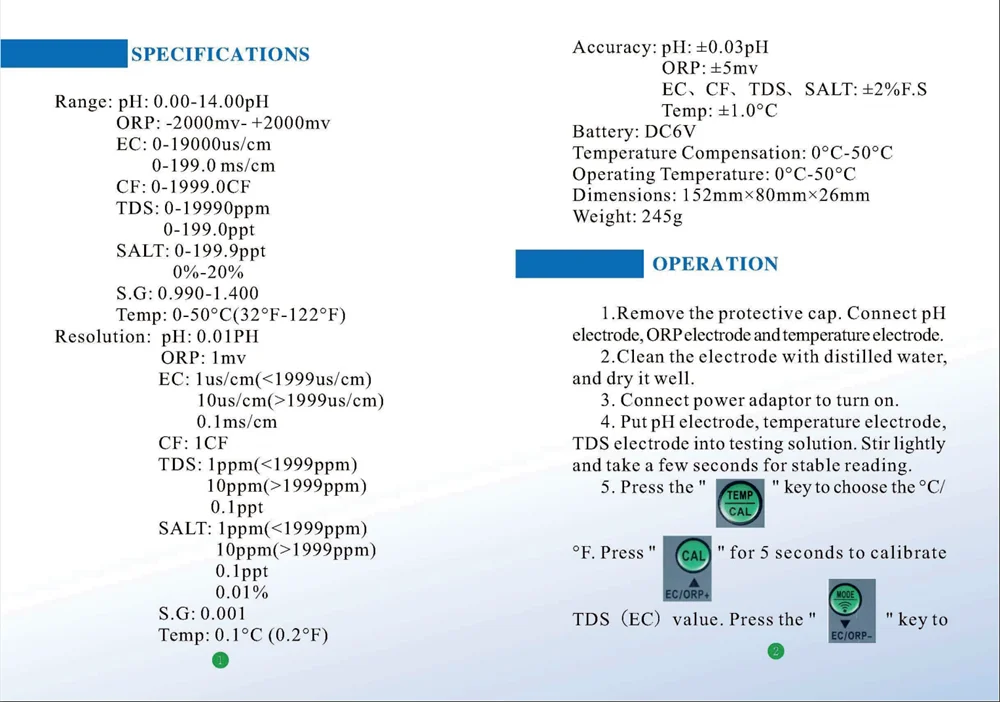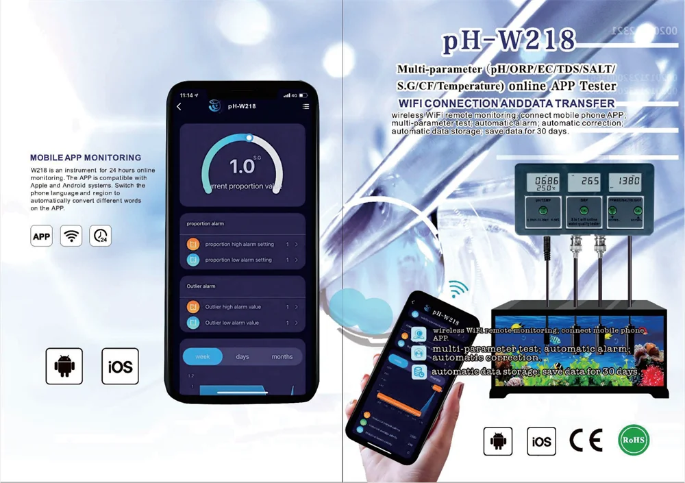 8-в-1 Wi-Fi Цифровой тестер качества воды PH EC TDS соль SG. Темп-восстановительного потенциала, концентрата эмульсии CF метр Многофункциональный Умный монитор приложение Tuya Управление