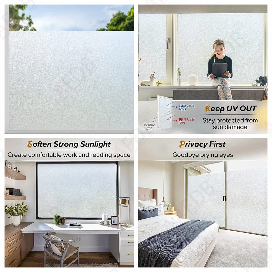 Пленка для окна конфиденциальности-эта Выгравированная стеклянная пленка может помочь предотвратить попадание людей на улицу непосредственно в ваш дом и затемнение на открытом воздухе. Обрезая блики солнца, наша оконная пленка может добавить конфиденциальность и безопасность для вашего дома, не блокируя естественный мягкий солнечный свет, защищая кожу и глаза от повреждений. Больше никаких раздражающих глаз вокруг вашего дома.