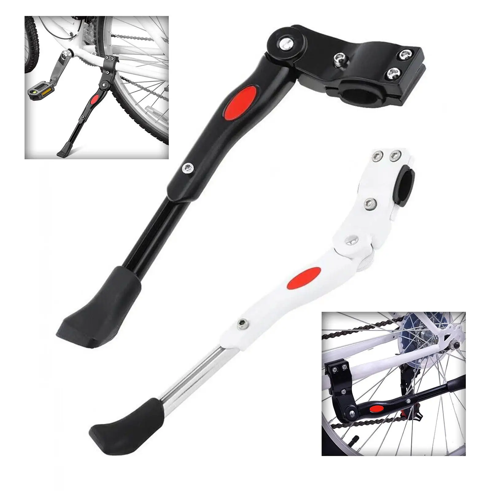 Регулируемый ослабьте средний винт этой велосипедной стойки для регулировки длины боковой стойки, длину можно регулировать между 34,5-38 см/13,58*14,96 дюйма. Задние велосипедные крепления доступны для прямоугольных и овальных трубчатых цепей (15 мм-28 мм).
