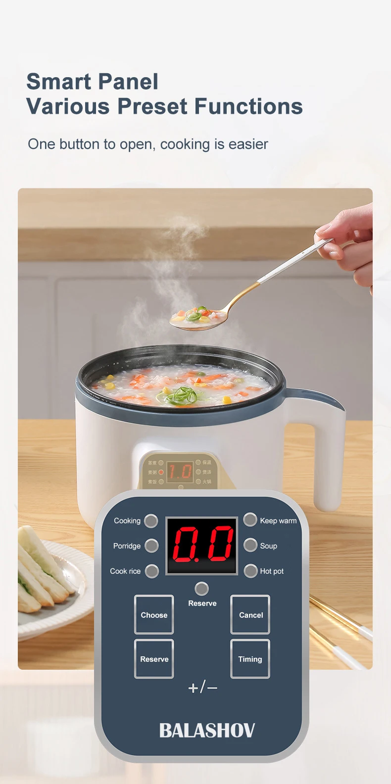 3. Многофункциональная рисоварка: используется для приготовления пищи, жарки, приготовления каши, горячего горшка и т. д.