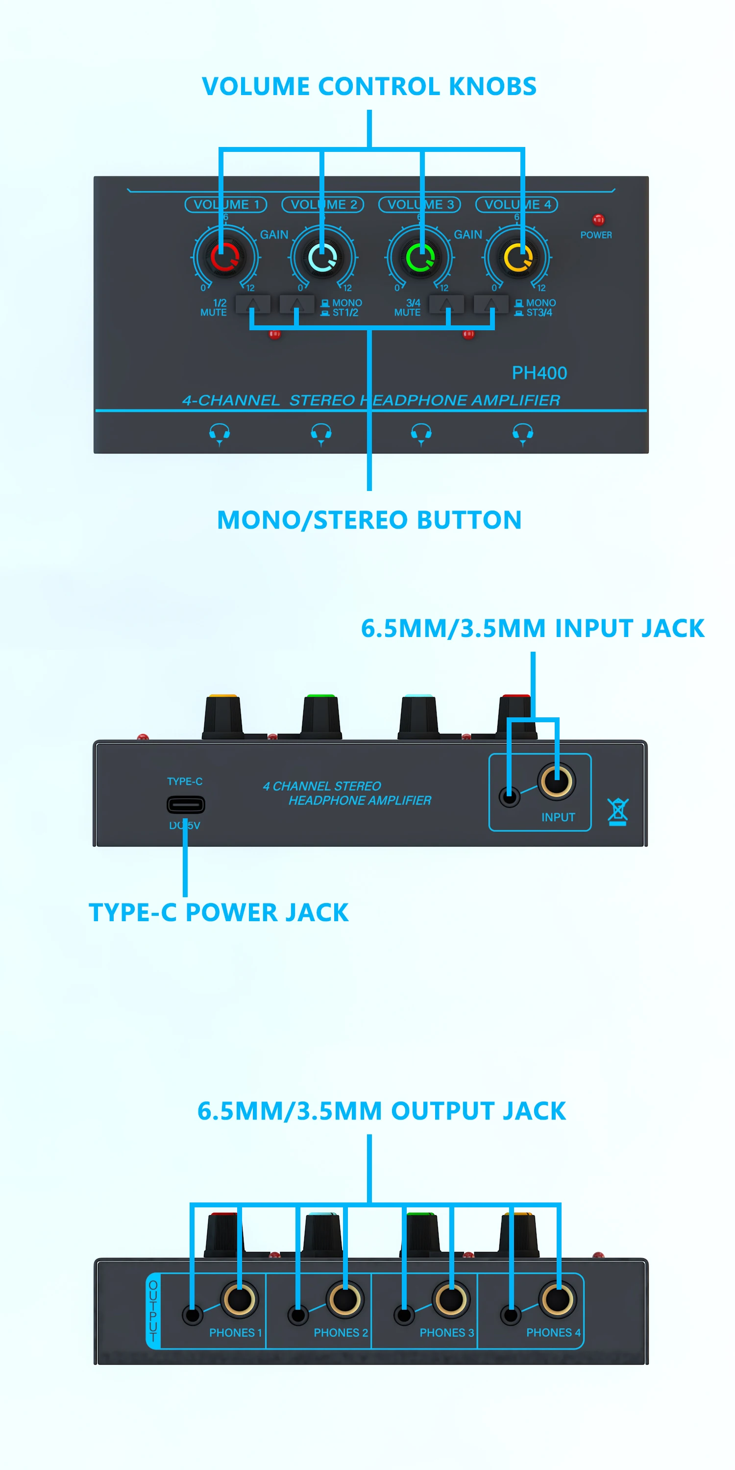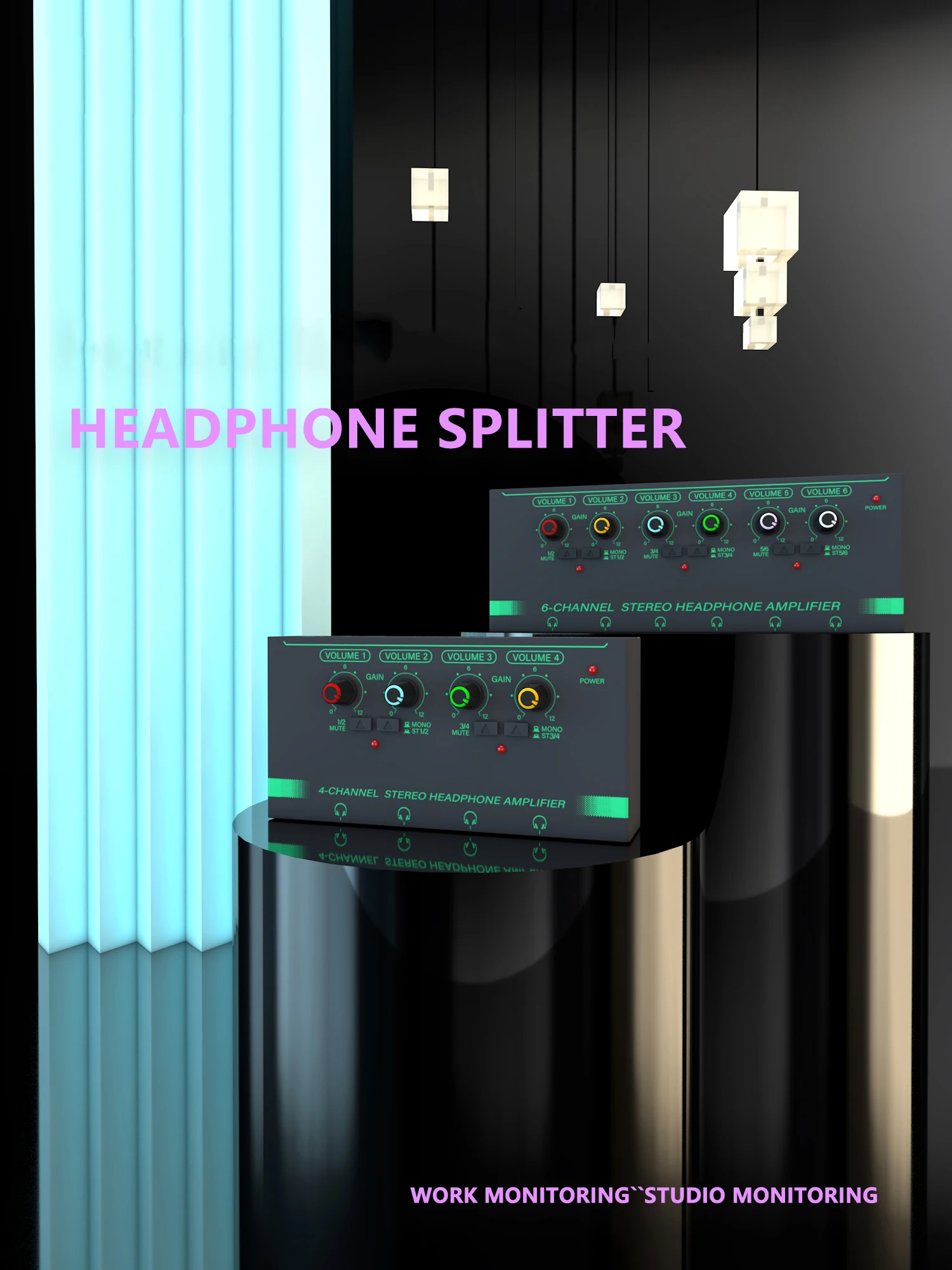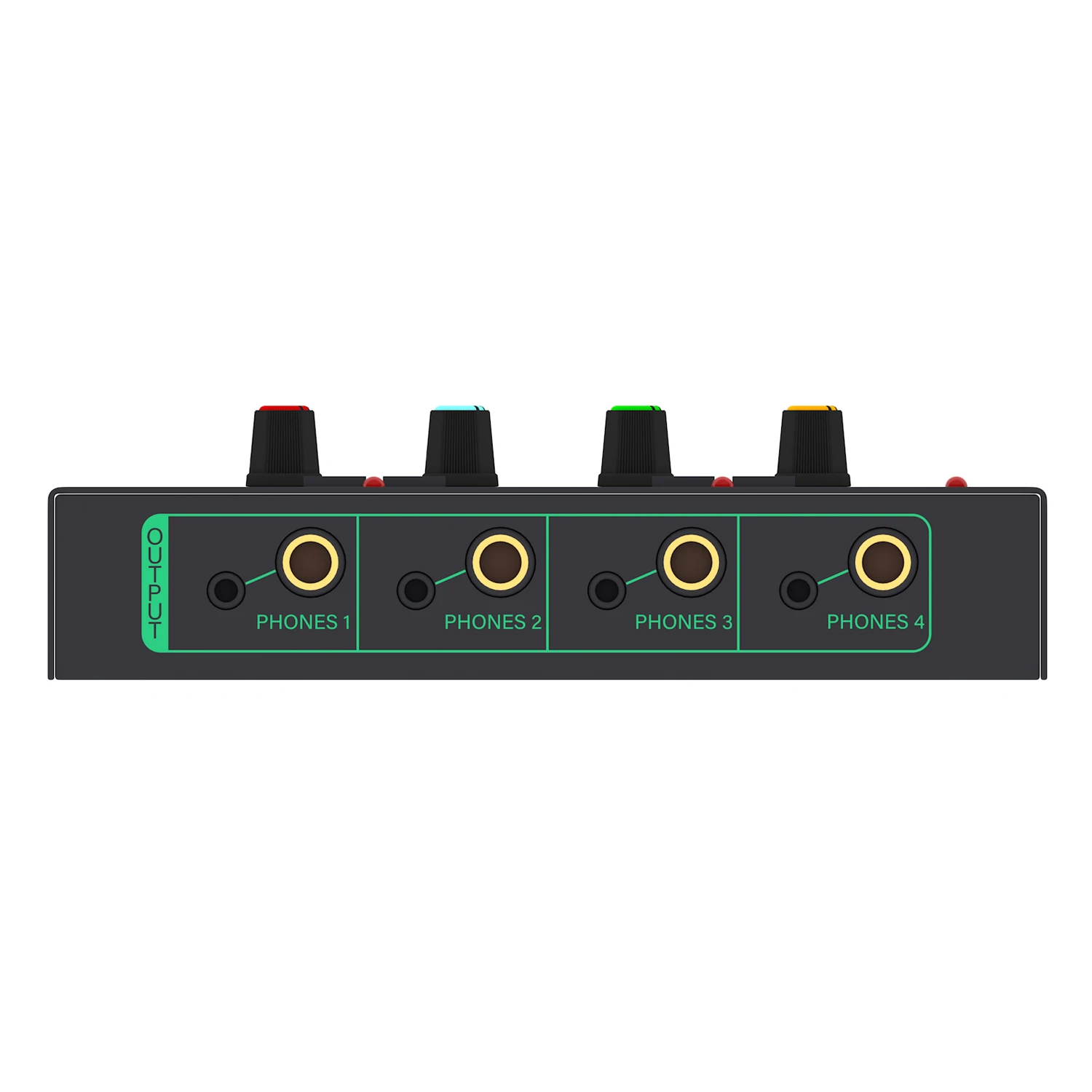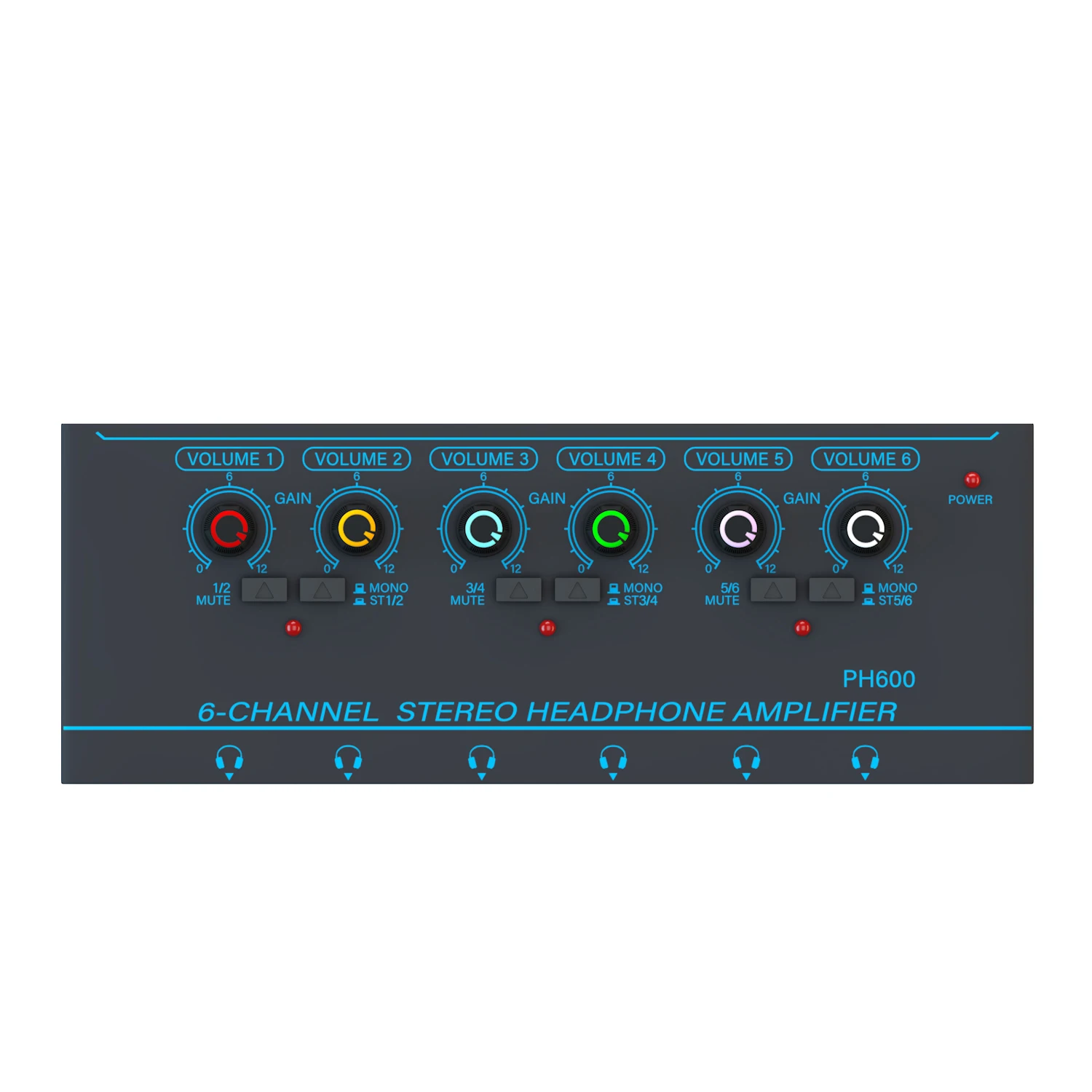 Компактный 4/6 канальный стерео усилитель для наушников может использоваться для наушников до 4/6 одновременно для одновременного прослушивания основной смеси с раздельным регулятором громкости.