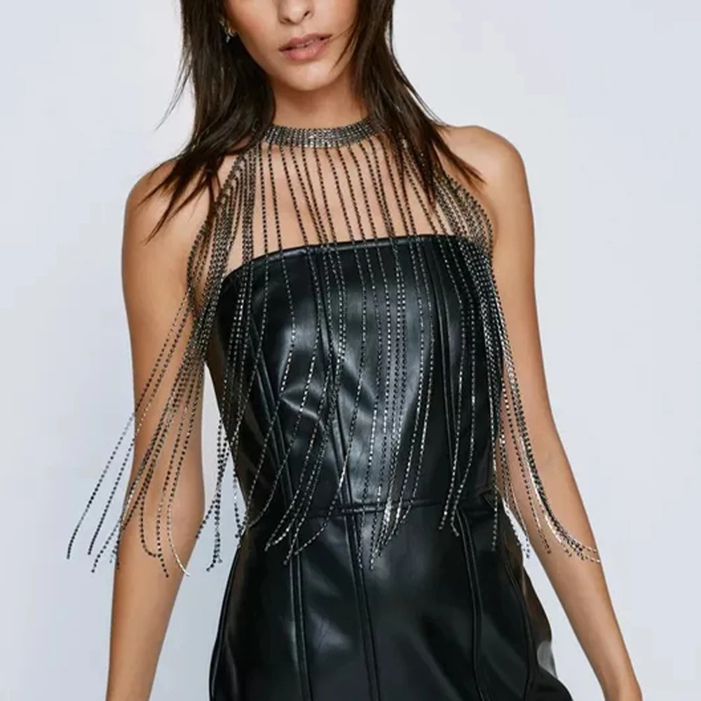 Delicated rave giltter body bra accessory jewelry have unique design with extension chain to adjust the suitable size.
