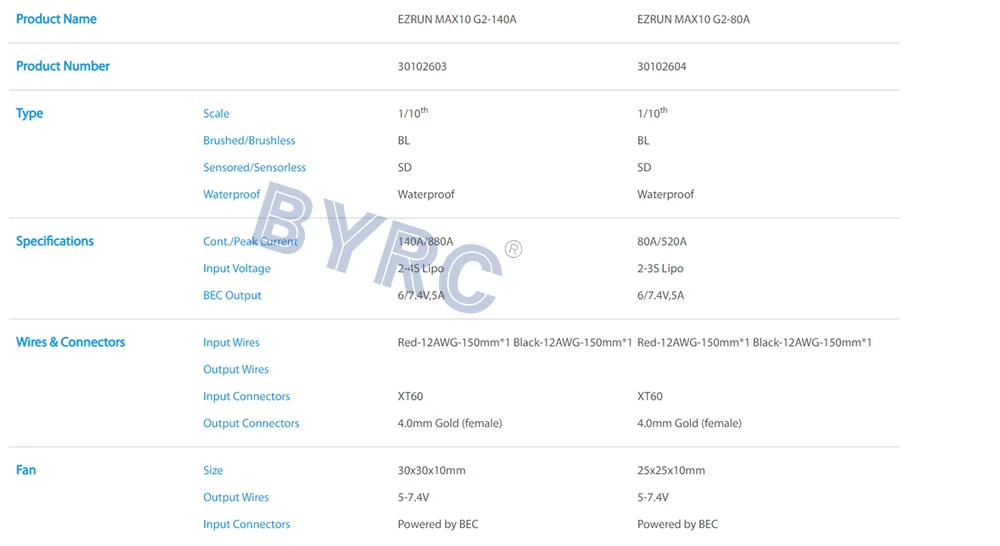 HobbyWing EZRUN MAX10 G2 140AБесщеточный бесщеточный ESCХарактеристика: