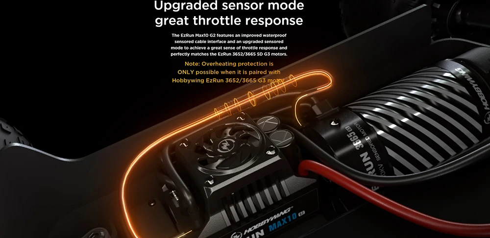 • Поддерживает настройку турбо-синхронизации, временной отклик замечателен, когда используется подходящий двигатель (например, EZRUN 3652SD/3665SD G3).