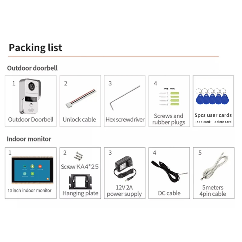 4. Адаптер питания: наружный дверной звонок и внутренний монитор имеют 12 В 2A адаптер питания