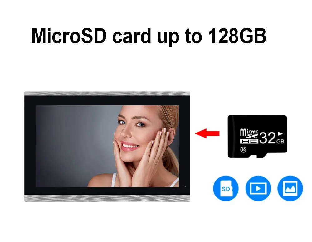 Когда Посетитель нажимает на дверной звонок или срабатывает обнаружение движения, камера автоматически снимет или записывает и сохраняет в дополнительной Micro SD-карте.