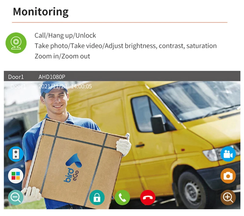 Если вы забыли ключ при закрытии двери, используйте свой телефон для разблокировки. Смотрите, слушайте и говорите с людьми (например, с курьером), как будто вы дома, никогда не пропустите ни одного гостя. Это удобно для пожилых людей или людей с ограниченной мобильностью, чтобы открыть дверь.