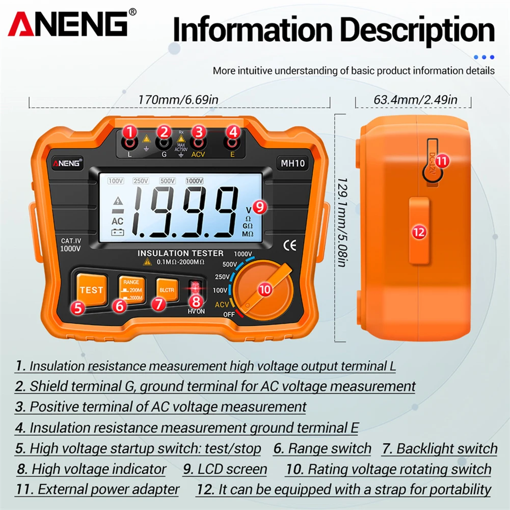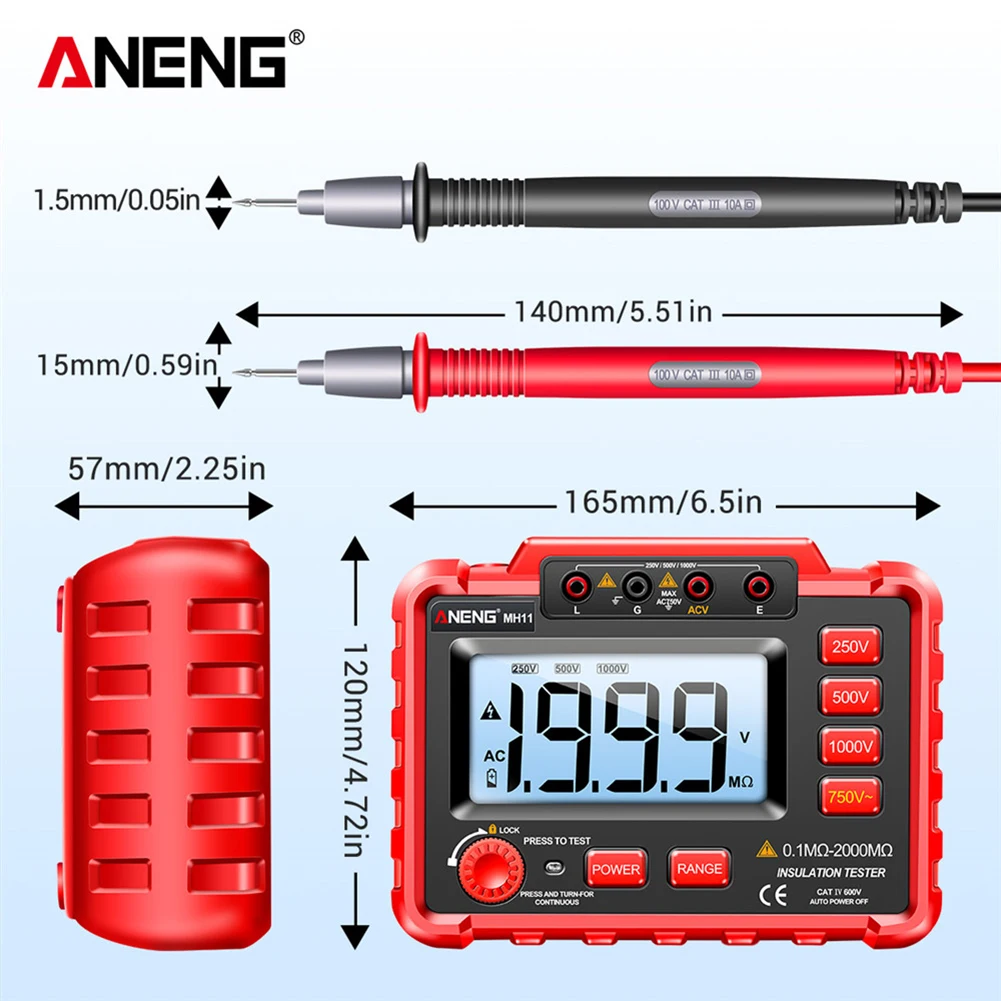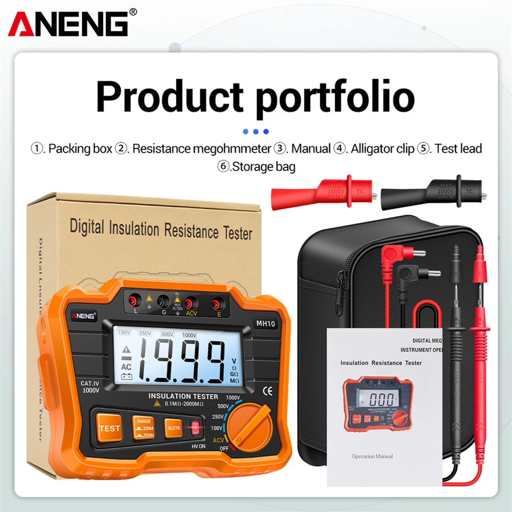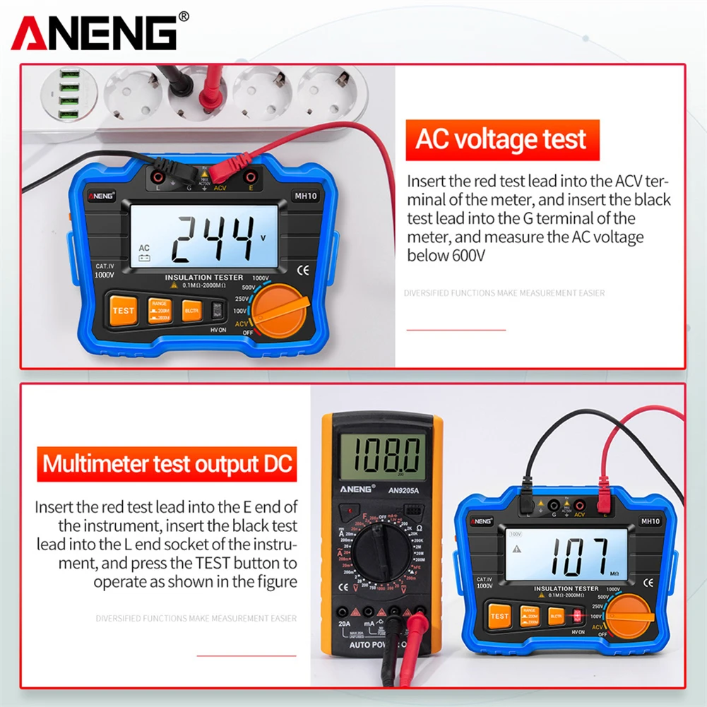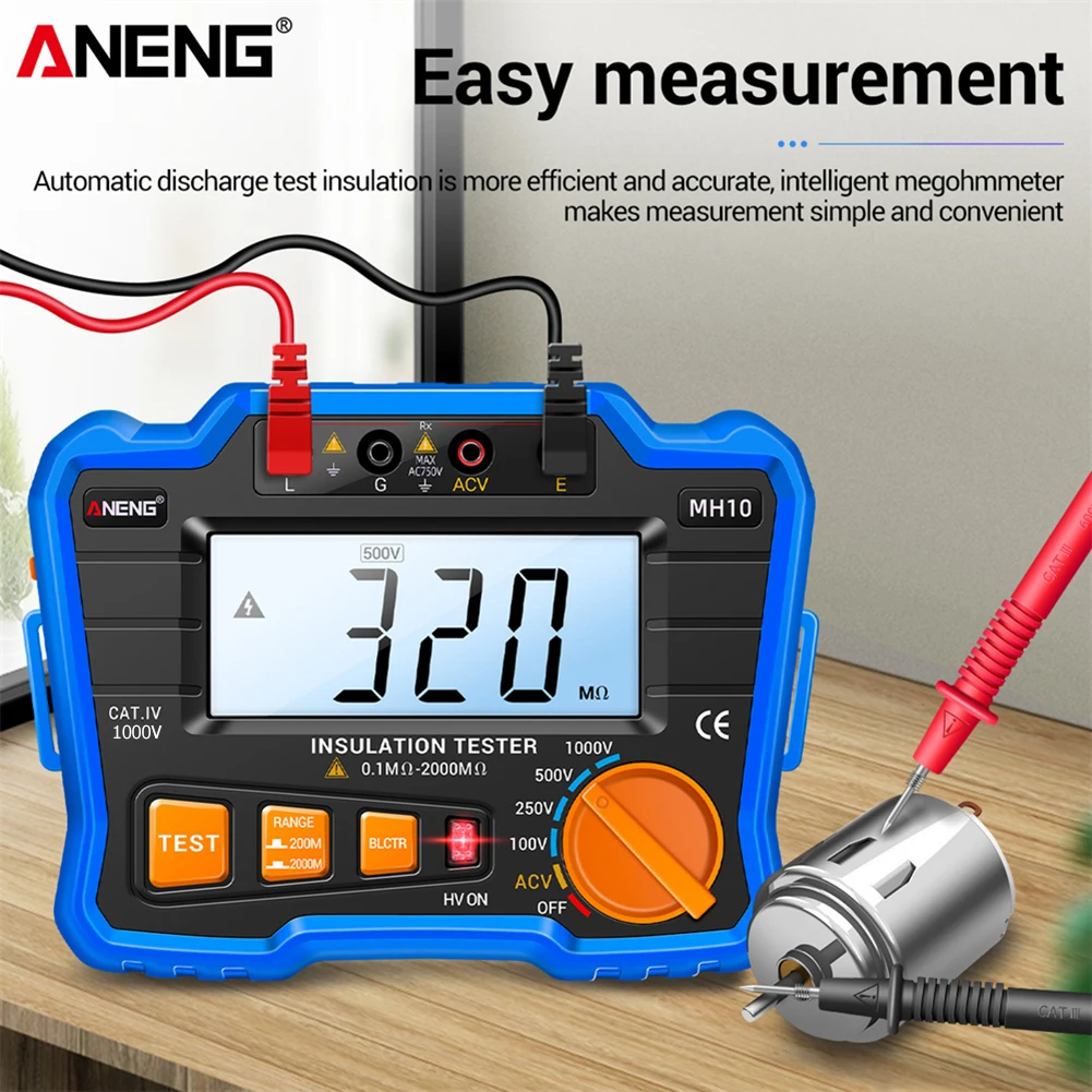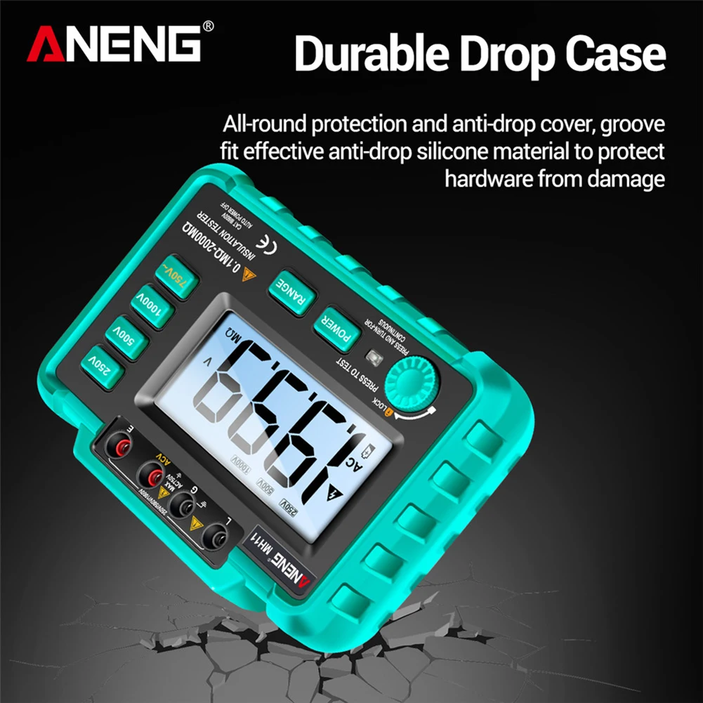 Тип 2:ANENG MH10 цифровой тестер сопротивления изоляции 100-1000 в Высокое напряжение ом Тестер Авто Диапазон мегометр мегомметр вольтметр