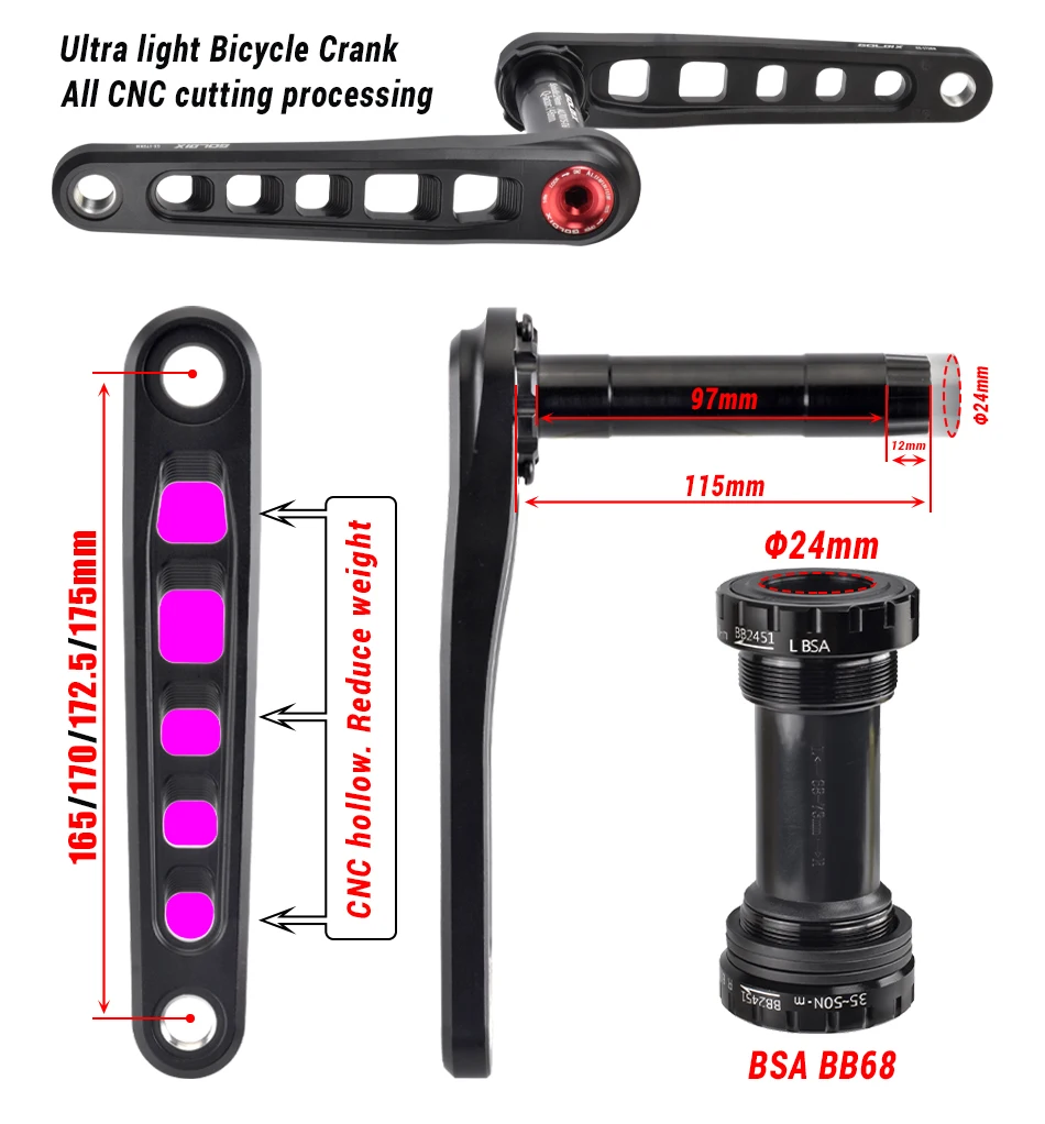 Длина рычага: 165/170/172.5/175 мм
