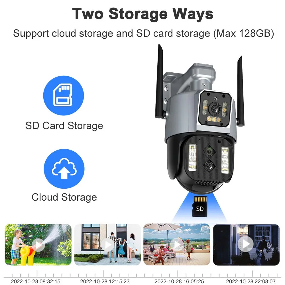 Эта камера видеонаблюдения поддерживает Micro SD карту памяти до 128 ГБ (видео можно воспроизводить в локальной сети). Облачное хранилище, чтобы избежать риска потери кадра с sd-карты. Вы можете войти в зашифрованное мобильный телефон приложение, чтобы мгновенно определить ваши кадры через умную временную шкалу и воспроизвести его обратно в бесшовном и блестящем качестве HD (размер пространства sd-карты может быть выбран в опции!)."