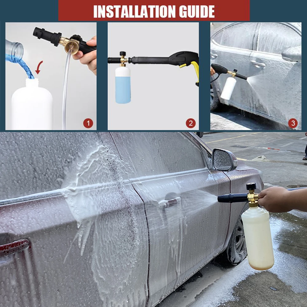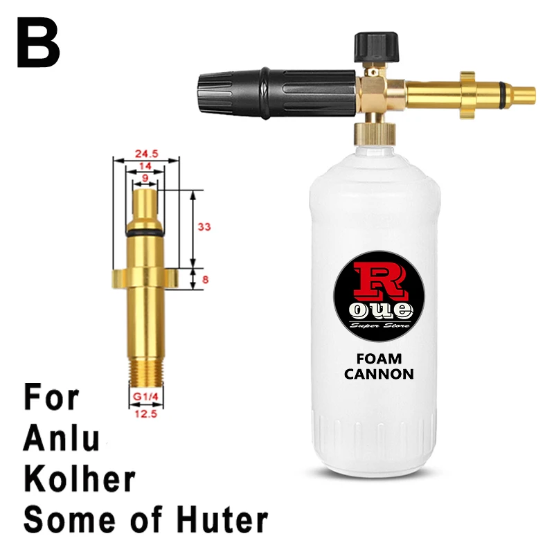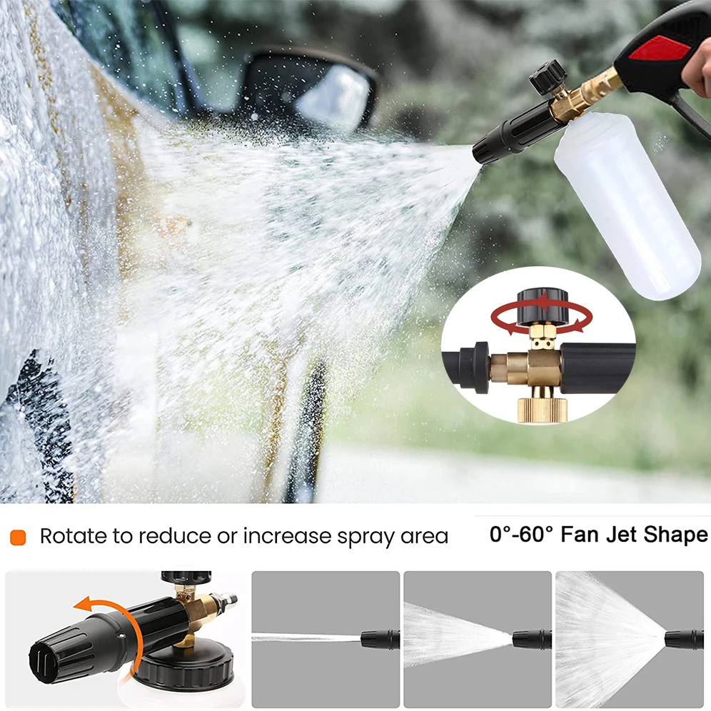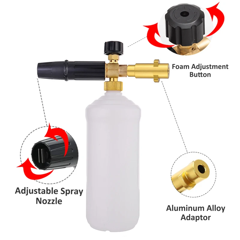Все наши продукты были 100% проверены и протестированы перед отправкой. Пожалуйста, будьте уверены в покупке. Мы предлагаем нашим клиентам самые конкурентоспособные цены и высокое качество продукции. (Отказ от ответственности: Мы не являемся этими брендами или аффилированными с ними выше. Мы не продаем эти мойки высокого давления, но предлагаем некоторые совместимые части для них.) Содержимое посылки: 1. Латунный генератор пены тела 2. 1 литровая бутылка, отмеченная калибровкой громкости 3. Всасывающая трубка 4. Выбранный адаптер 5. PTFE уплотнительная лента Спецификация: 1. Диапазон давления: 100 бар ~ 220 бар (1400psi ~ 3200 psi), как домашние, так и профессиональные мойки высокого давления работают идеально; 2. Производительность вспенивания: обильная, толстая и высокоплотная пена, сверхпрочная и прочная конструкция 3. Емкость бутылки: 1 л 4. Регулируемый шаблон распыления-вертикальный или горизонтальный, переменный угол распыления от карандаша 0 ° до вентилятора 60 °. 5. Регулирующая ручка сверху позволяет регулировать соотношение воды и мыла, что позволяет увеличить или уменьшить толщину поролона. Как использовать: 1. Сборка адаптера с уплотнительной лентой для пенопласта, затем подключите его к пистолету для мойки давления или удлинительному стержню. 2. Чтобы получить плотную пену, добавьте около 20% шампуня для мытья автомобиля и 80% воды в бутылку. 3. Ручка регулятора контролирует количество мыла и смеси воды, которая сделана из бутылки. 4. С регулируемым соплом вентилятора Foam Lance вы можете отрегулировать шаблон распыления от вертикального до горизонтального стиля и от прямого потока до широкого вентилятора. Обслуживание клиентов: Если есть какие-либо вопросы или вопросы, вы можете отправить сообщение и фотографию в нашу службу поддержки клиентов, мы ответим в течение 24 часов!Адаптеры Optionele (zie de afmetingen voor referentie hieronder)