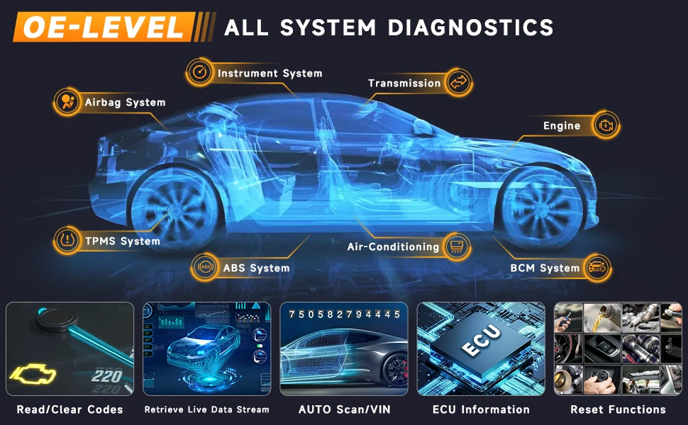 -Полная система диагностики OE-level: доступ ко всем доступным системам транспортных средств для детального анализа.