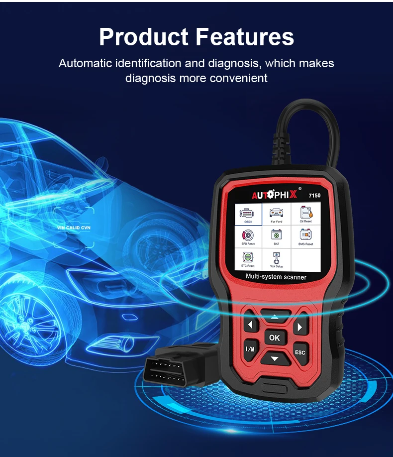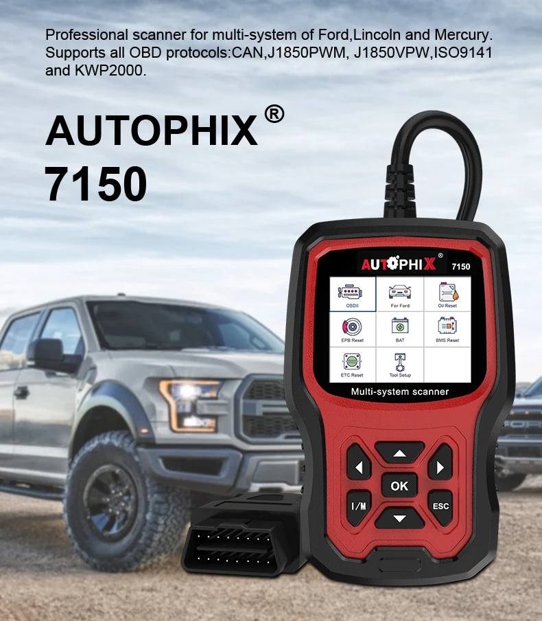Autophix 7150 Профессиональный OBD2 автоматический сканер кода считыватель EPB TPMS и т. Д. Многоязычный OBD 2 Автомобильный диагностический инструмент для Ford