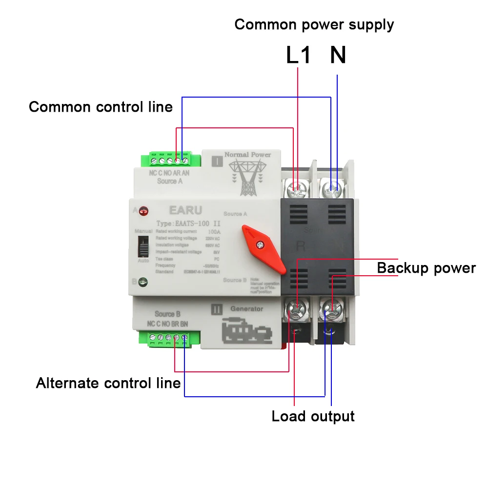 Примечание:Номинальное напряжение общего и резервного источника питания в диапазоне 85%-110%, и ток не может быть меньше 5А, в противном случае катушка нагревается или даже спонтанно горит. Если напряжение вашего города не стабильное, пожалуйста, добавьте протекторы напряжения в систему.