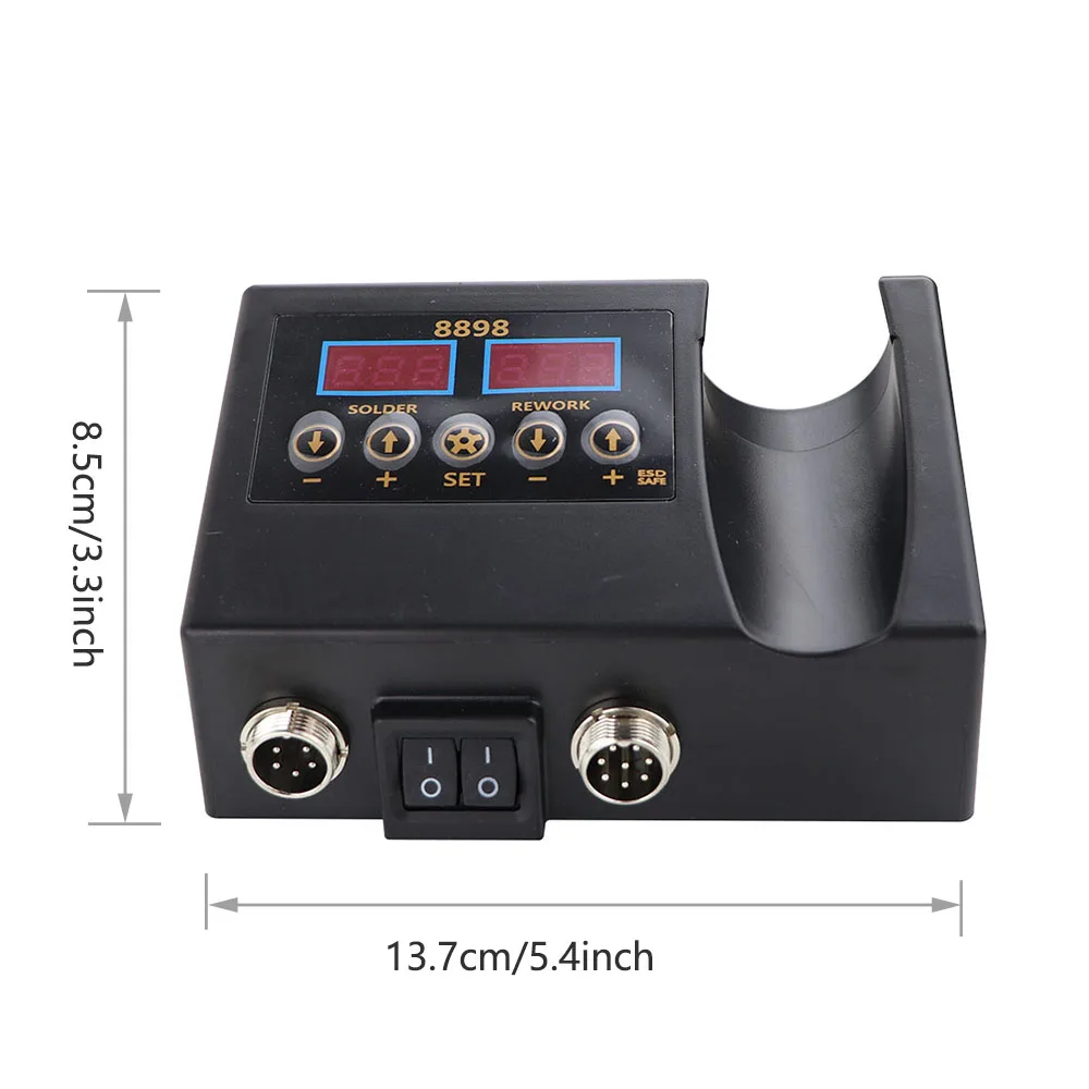 Это совершенно новая паяльная станция 2в1 SMD. Металлический корпус из сплава с высококачественным силиконовым корпусом отличается элегантным внешним видом и энергосбережением. Вы можете использовать пистолет горячего воздуха и паяльник отдельно, без помех друг с другом.