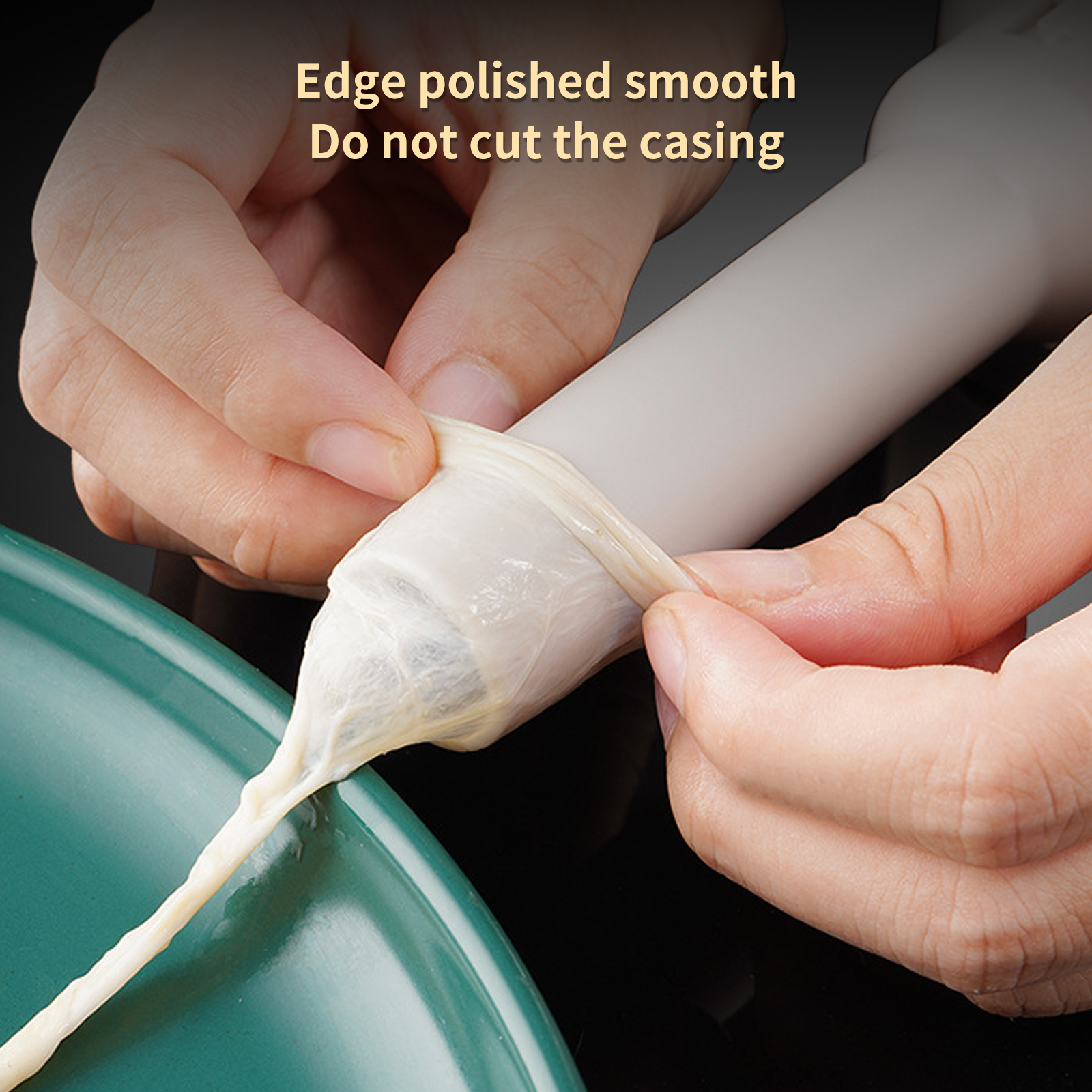 2,4 наполнение насадки: колбачный шприц оснащен 4 пластиковых насадок, приходят с четыре разных размера заполнения трубки (1,3 см, 1,8 см, 2,3 см и 2,8 см), что позволит вам сделать хот-догов, братуров, горячих звеньев и многое другое.