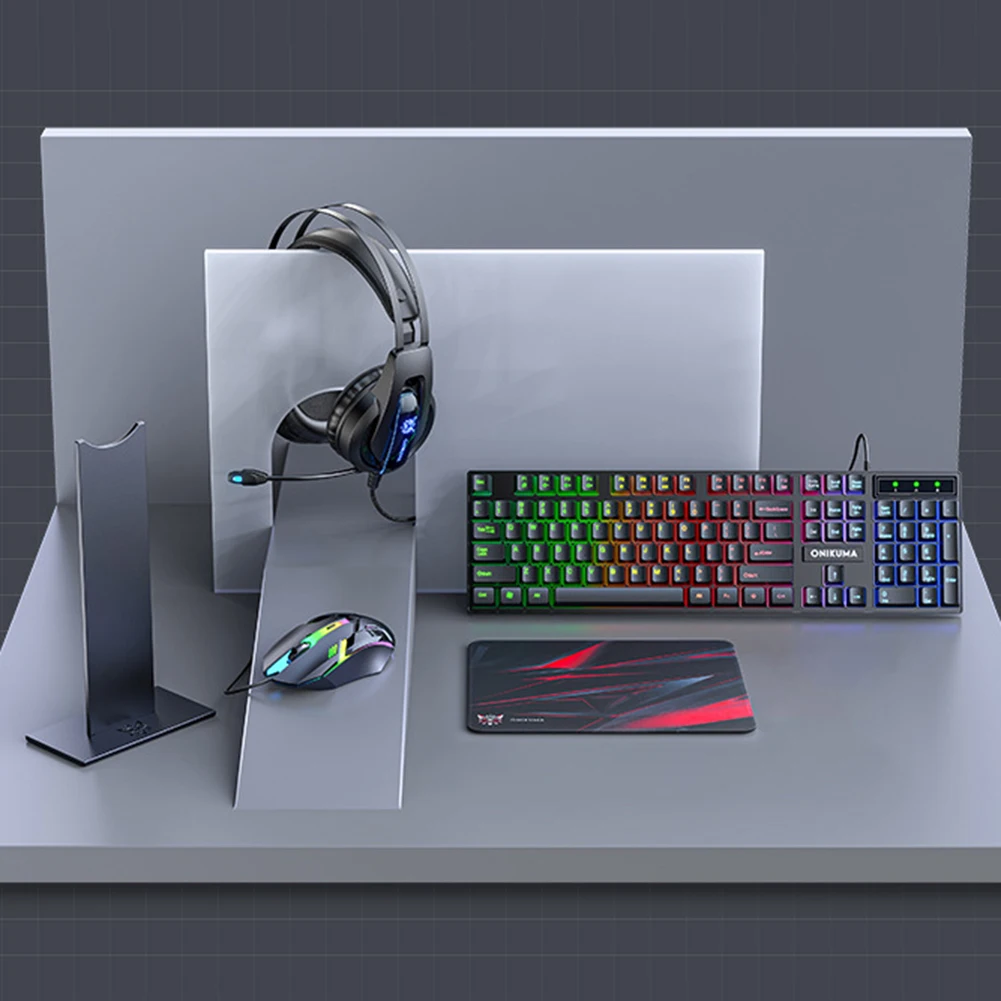 Игровая клавиатура, мышь, гарнитура, держатель, коврик для мыши, набор из пяти предметов, 104 клавиши, клавиатура, 1600DPI, мыши, наушники, комбо для ПК, ноутбука, геймера