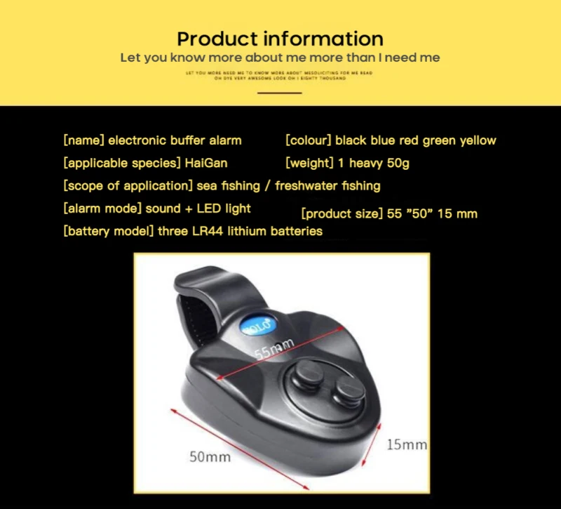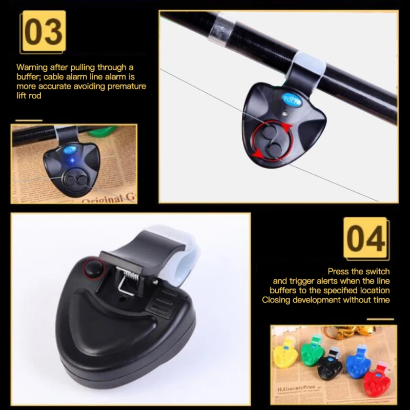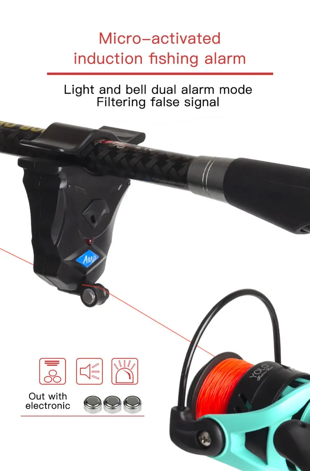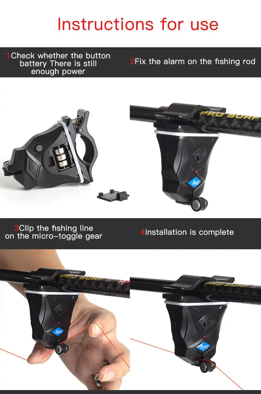 [Установка] Этот продукт подходит для различных рыболовных операций, таких как метание морских стержней дома и за рубежом. Вам нужно приобрести 3 батарейки LR44 самостоятельно (можно обеспечить без батарей), этот продукт маленький и красивый, надежный по качеству, практичный и полный функций. Он очень прост в использовании, просто Закрепите его на удочке и включите переключатель, чтобы начать работу. Устройство сигнализации срабатывает из-за индукции микроциферблата, которая более чувствительна и может нормально работать, когда леска очень тугая (см. Видео введение для получения подробной информации).