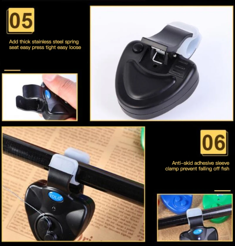 【 5. Легко установить и использовать: высококачественный сигнализатор для ловли рыбы, уже поставляется с батареей, прост в эксплуатации, очень прост в замене батареи. Сигнализатор укуса рыбы надежно крепится на полюсах, они очень плотно висят и изготовлены из прочного материала. Легко установить и снять, необходимо иметь для серьезных рыбаков.