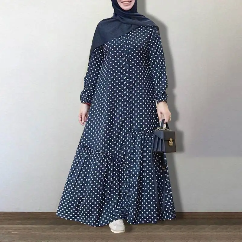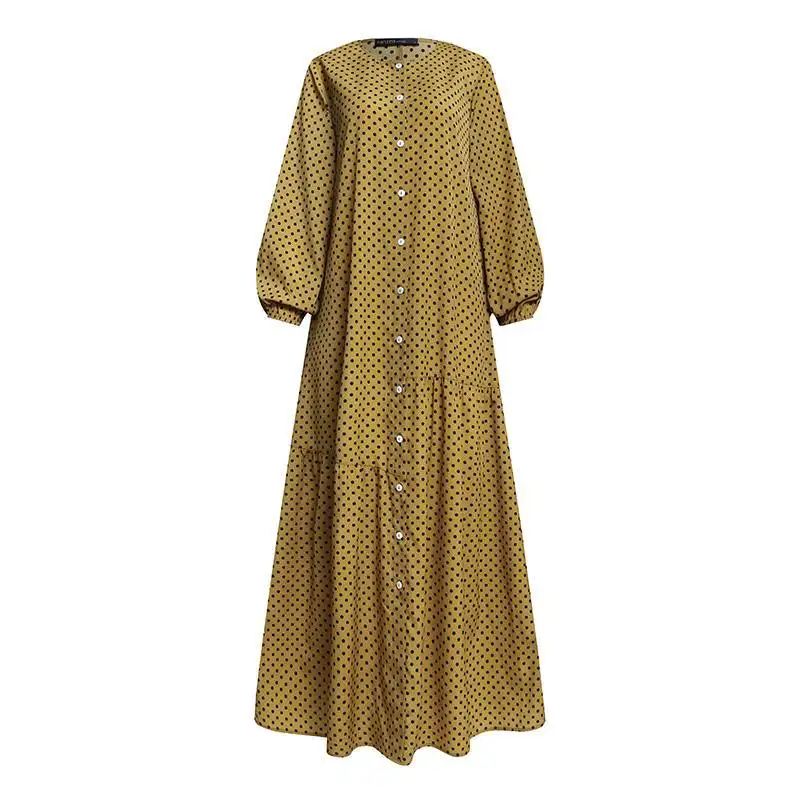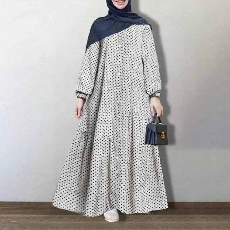 Новинка, Свободная Женская юбка в горошек, Солнцезащитная юбка с полным покрытием, сарафан с принтом, длинное летнее платье макси с длинным рукавом для женщин, популярная уличная одежда
