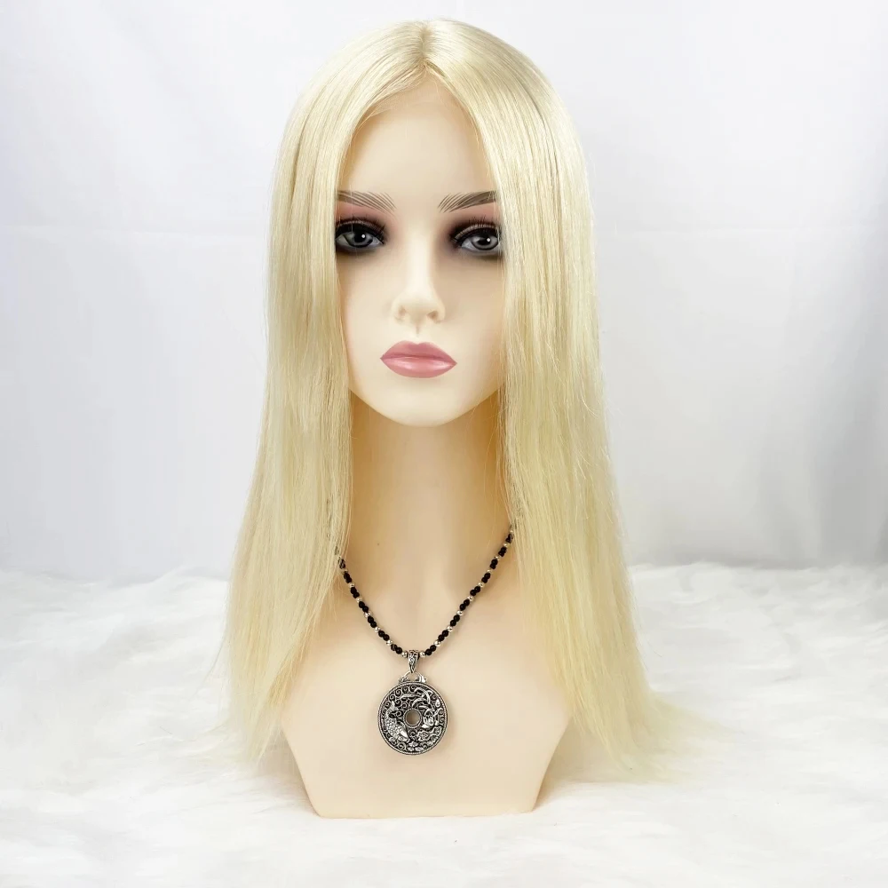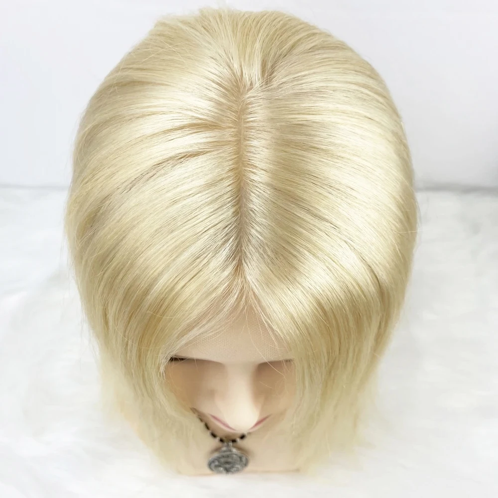 5 "x5" светильник блондинка из человеческих волос Топпер на шелковой основе девственная Европейская наконечник для волос с зажимами в шелковом верхнем парике для женщин 15x16 см