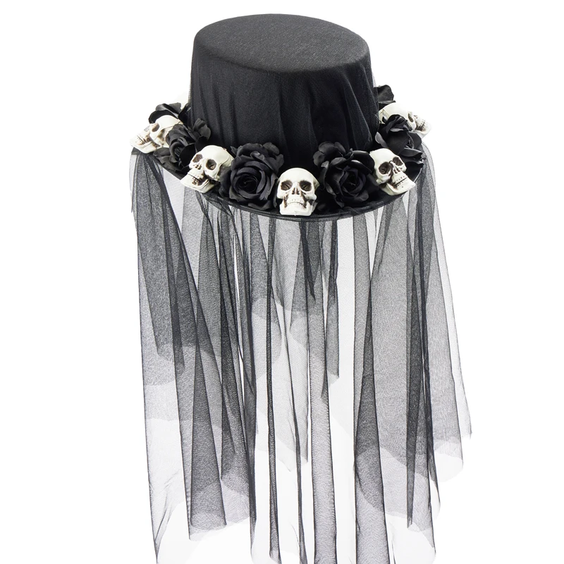 Черная шляпа-вуаль ручной работы для женщин Лолита Викторианский готический череп с розовым верхом вечерние фэнди платье головной убор