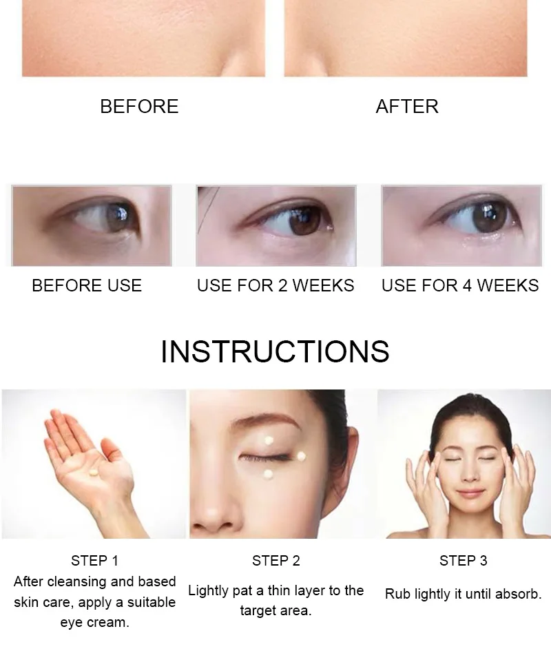 Описание товара Название продукта Горячая Распродажа, наиболее эффективный крем для восстановления глаз, частная Этикетка OEM ODM, увлажняющий, против морщин, Уход за глазами, оптовая продажа Эффективность продукта MOPOYAT Eye Essence-это волшебный крем, содержащий несколько растительных ингредиентов, которые эффективно уменьшают мешки для глаз и темные