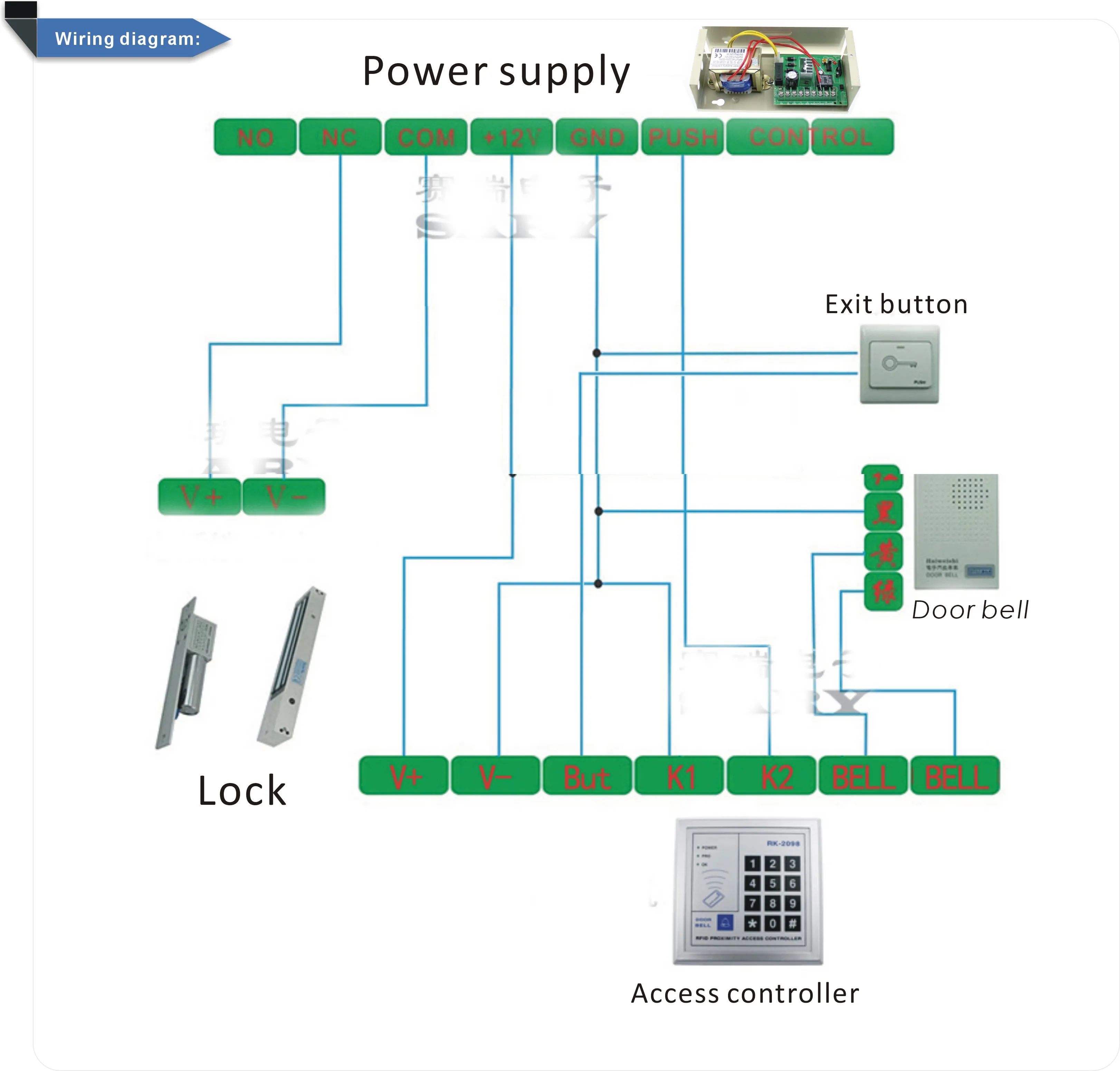 Позвольте открыть кнопку ввода, может непосредственно открыть электрический замок, функция автоматической защиты