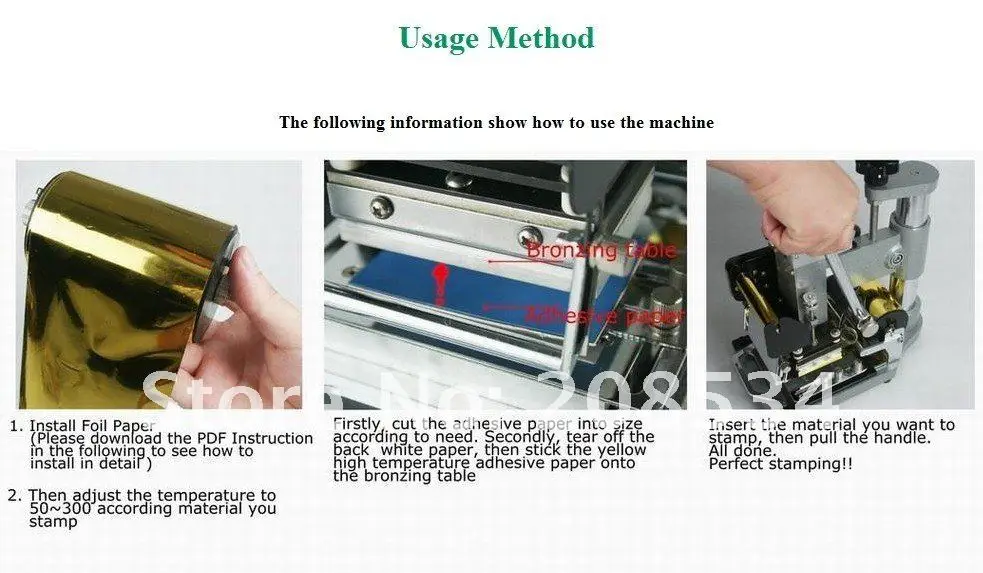Печать или горячее тиснение собственного дизайна, логотипа, рисунка или текста на бумаге, коже, пластике, ткани, ПВХ-картах и т. д. с отличным эффектом горячего тиснения фольгой.