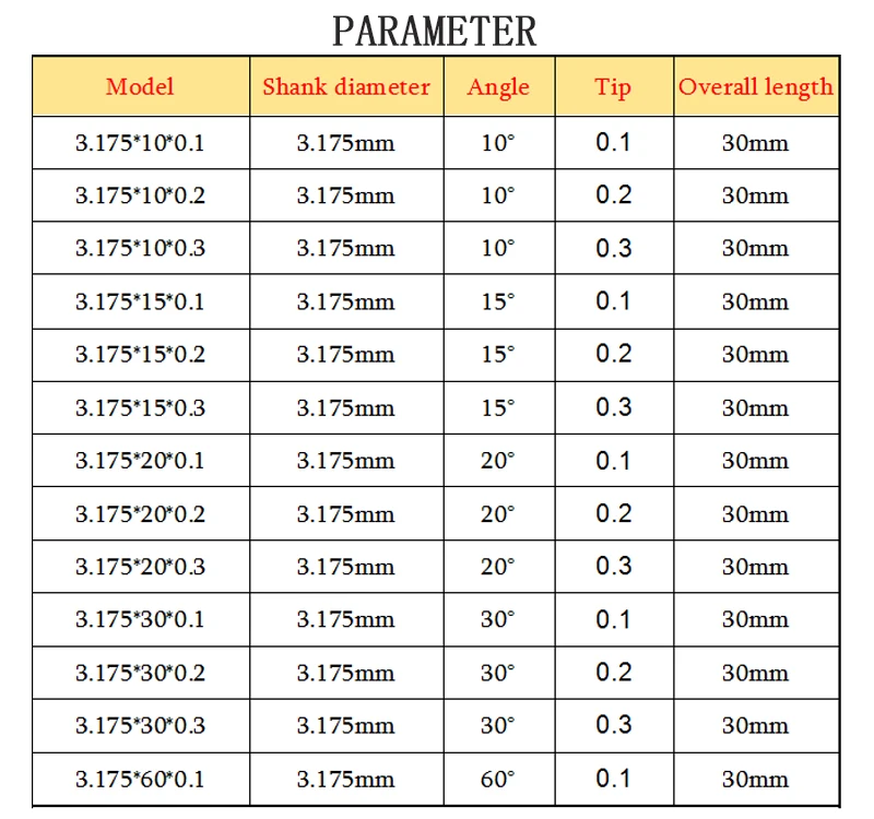 Модель: 3.175X20 ° x0.1ммПлоские острые режущие инструменты