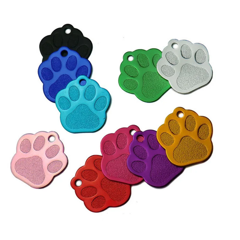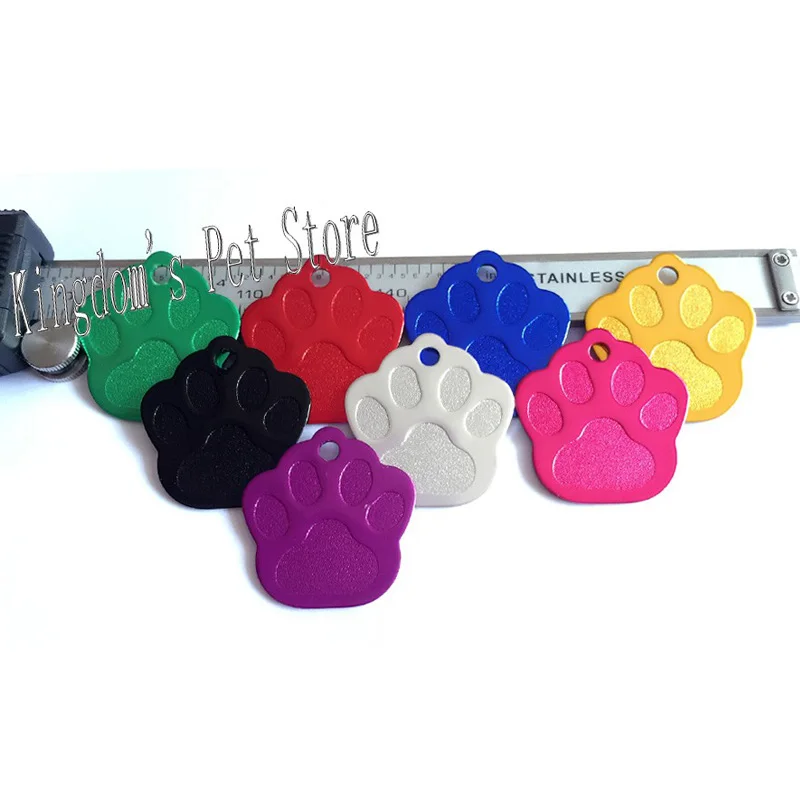 Ярлыки для домашних животных, бесплатная доставка, алюминиевый сплав 33*35 мм, смешанные цвета, 100 шт./лот, собачья лапа, форма для домашних животных, IDTags, несколько дизайнов, Именные Бирки Для Собак