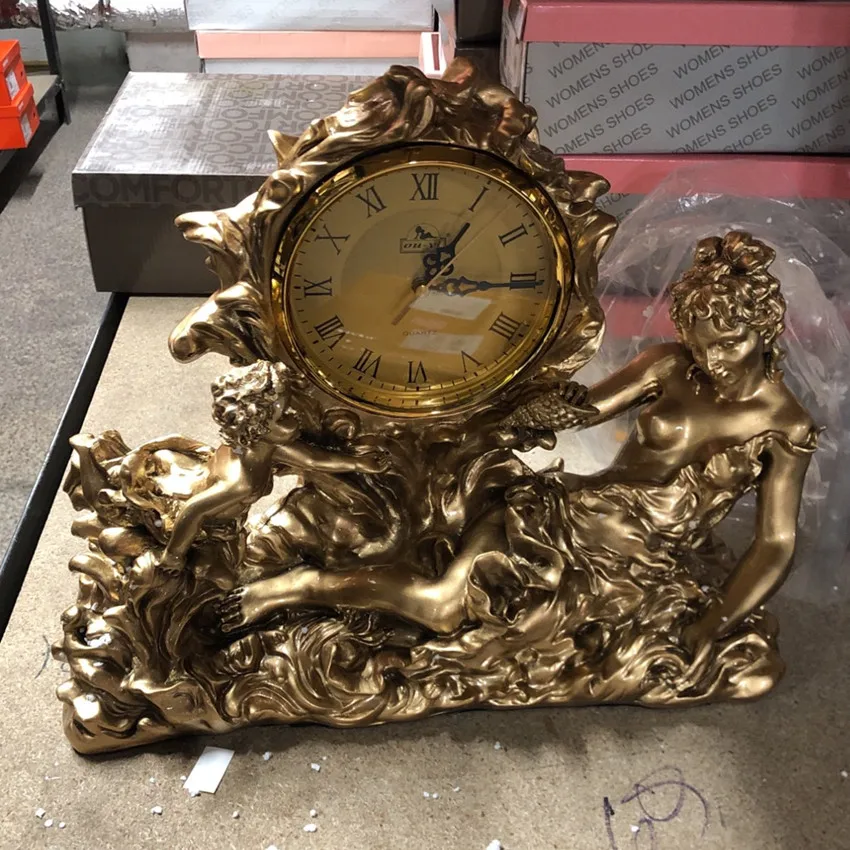 Европейская мода домашний Декор золотые античные часы из смолы настольные часы богиня и статуя ангелов большой размер кварцевые беззвучные геометрические