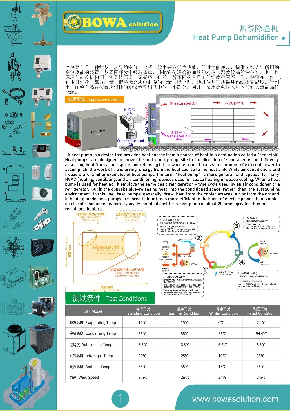 (1) испаритель круга Карно используется для охлаждения и осушения влажного воздуха в сушильной камере при прохождении. Внутренний хладагент низкого давления и температуры от жидкости к газообразной поглощает тепло воздуха, и большая часть конденсированной воды удаляется из-за охлаждения.