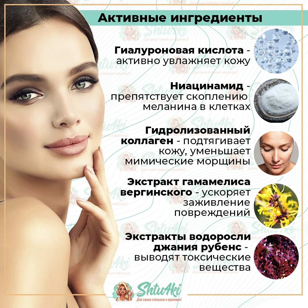 Niacinamide. This component prevents the accumulation of melanin in the cells, which allows you to align the face tone and improve its color.