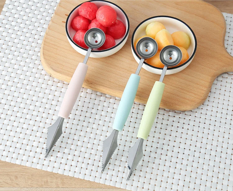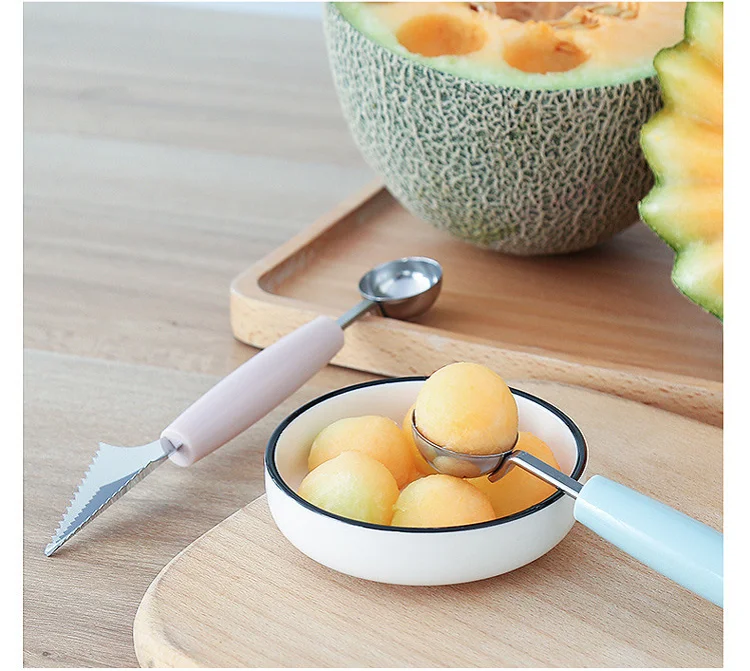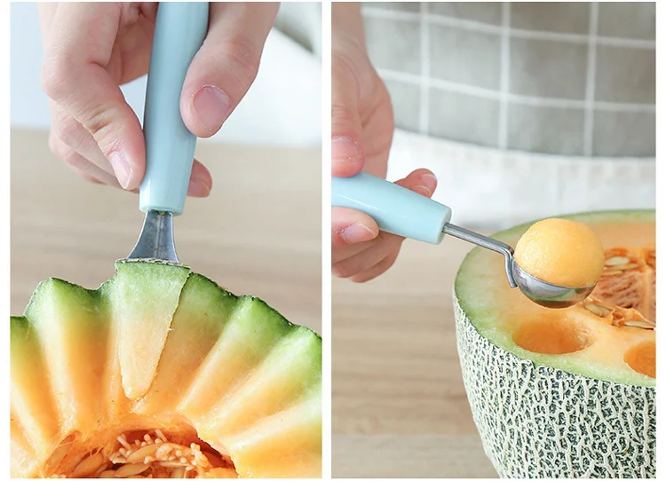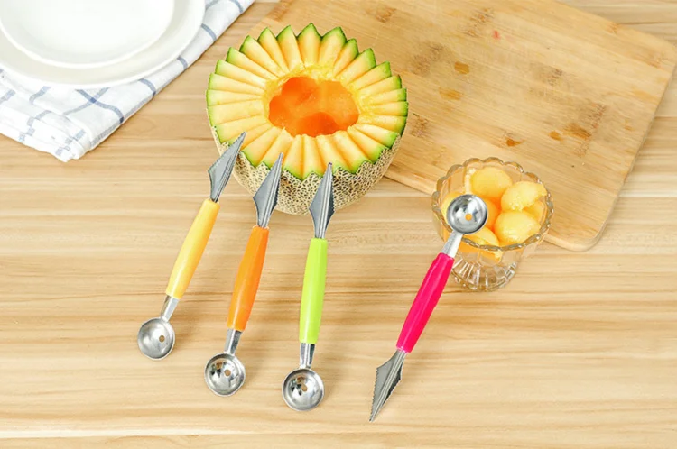 Универсальный дизайн с двойным концом, можно выкопать Сферический фруктовый шарик или круглые шарики для мороженого, можно легко очистить, другой может сделать причудливую скульптуру из нержавеющей стали pemium для легкого обслуживания и долговечности, здоровой и безопасной.