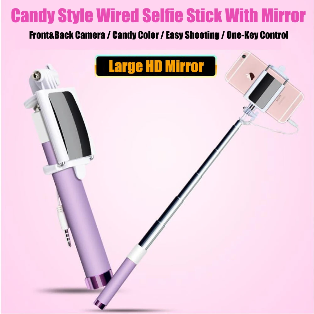 Портативный ручной выдвижной монопод селфи-Палка с задней HD зеркалом для iPhone 5 6 Plus Samsung Huawei Sony LG Xiaomi OPPO Vivo.