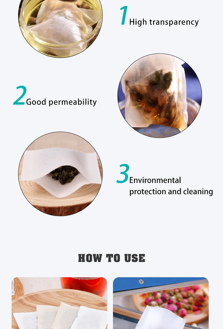 Европейский стандарт, сделано в Китае;Запечатать его ручной импульсный упаковщик/электрический упаковщик;Отсутствие загрязнения окружающей среды, нетоксичный и безопасный для нашего организма.Высокая прочность, хорошая прочность и термостойкость.Используется для наполнения 5g смеси чая или сухой травы или растений.Подходит для хранения чая, кофе, специй и травяного порошка.Удобно брать с собой в путешествие.