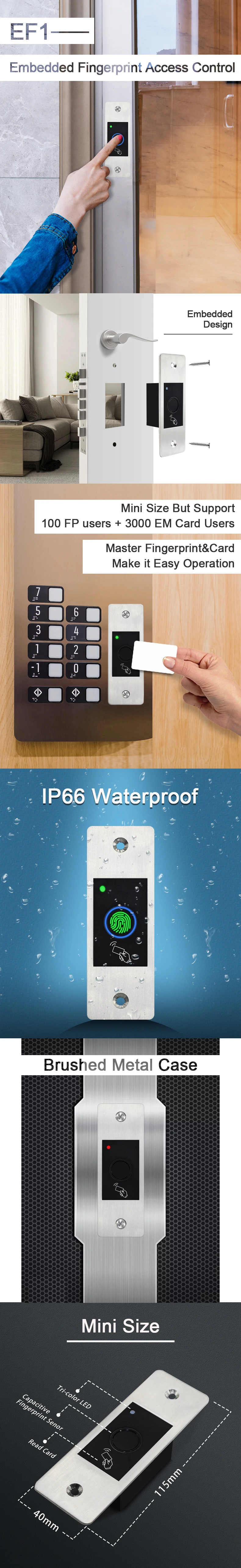 F99Это мини-металлический чехол, Автономный RFID/контроль доступа по отпечаткам пальцев со встроенным дизайном.